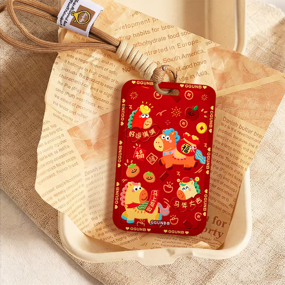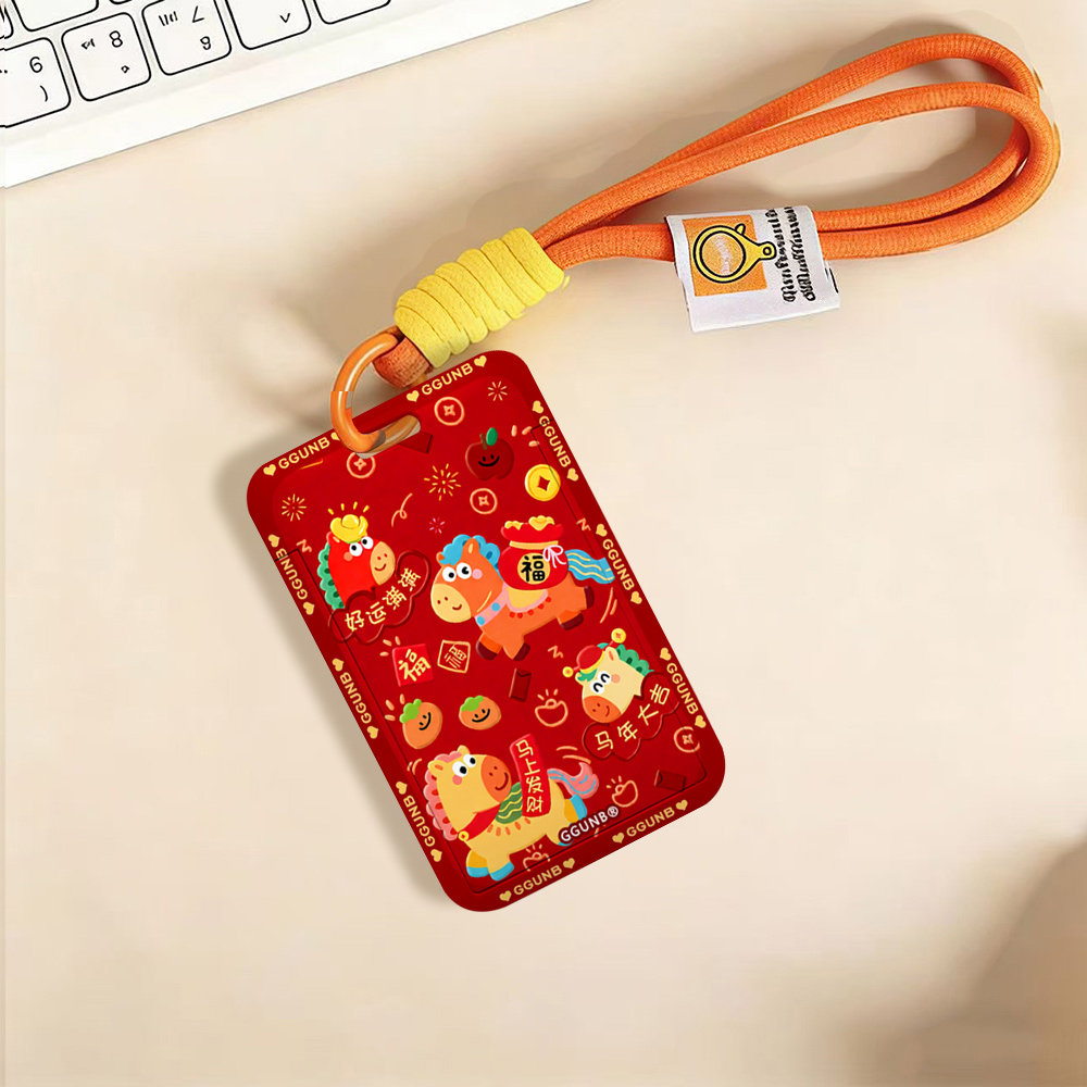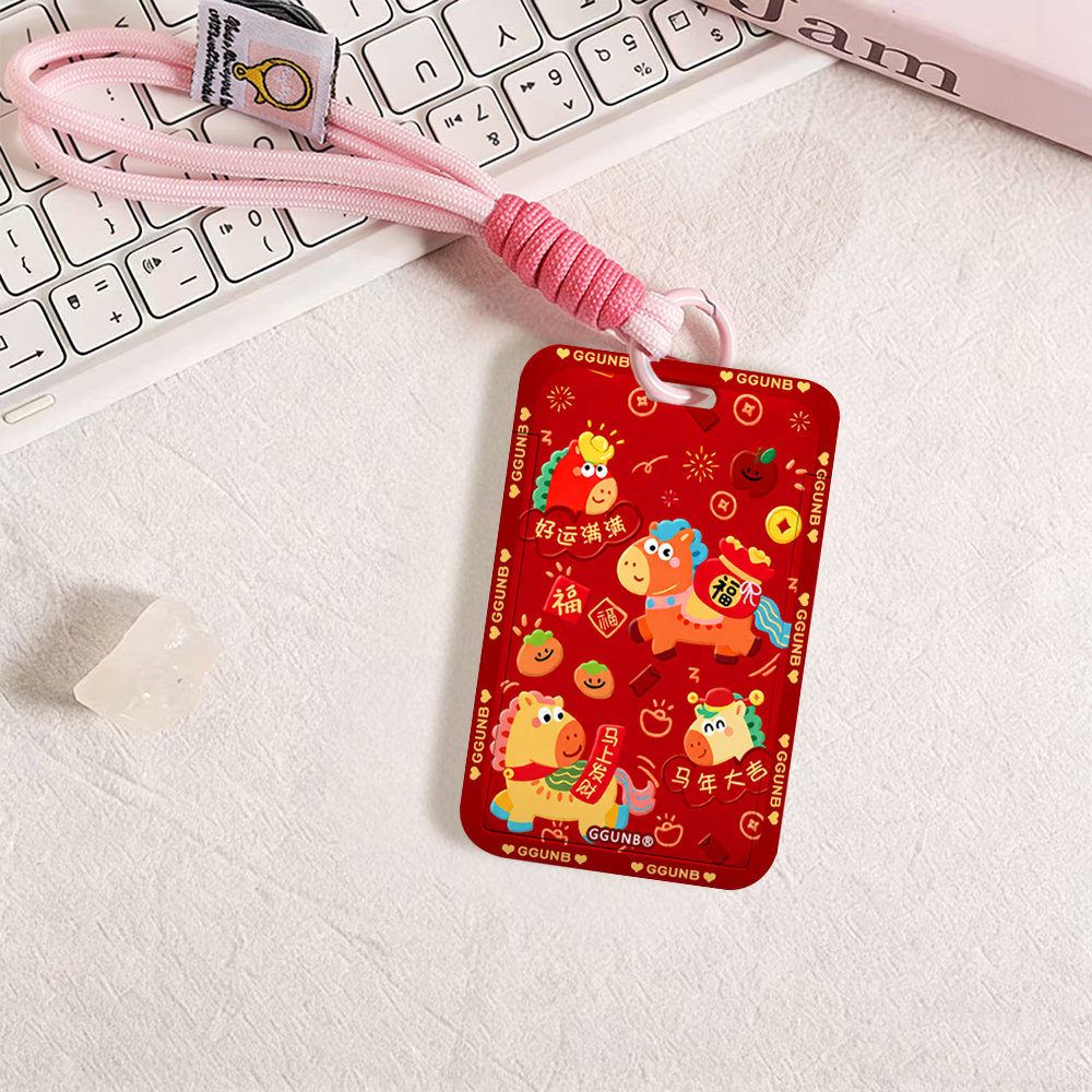 马年大吉驮福袋马头小马感应卡套学生滑盖卡套饭卡地铁电瓶车小区卡包学生卡公交卡身份证件