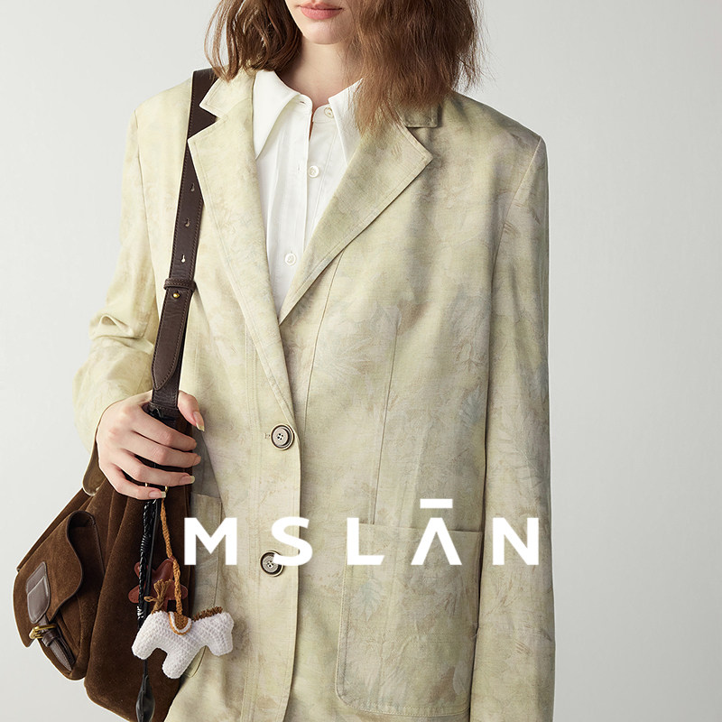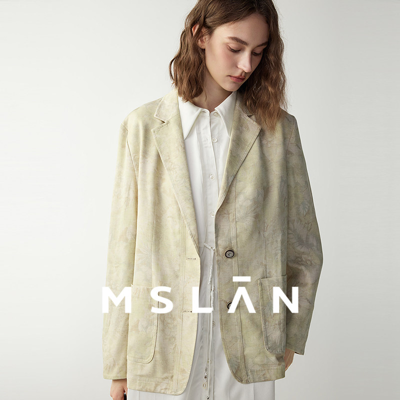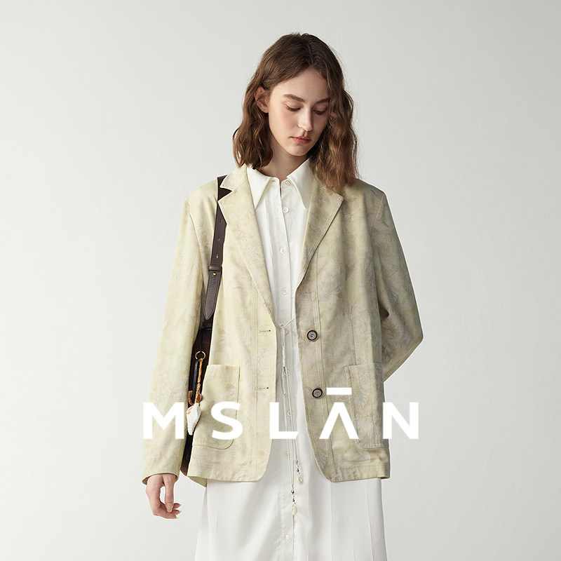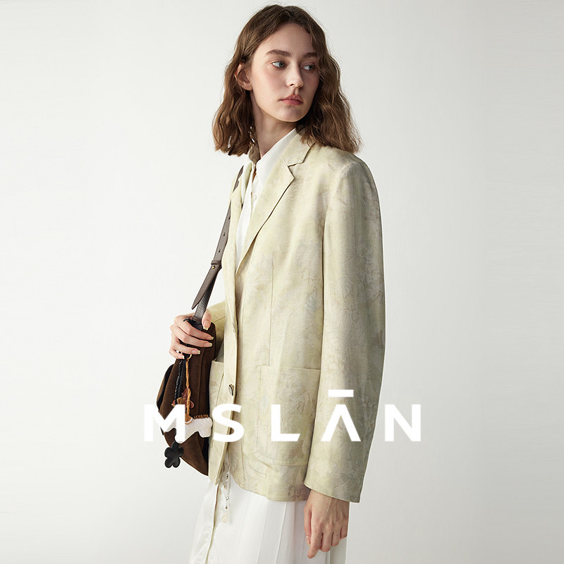 植物系/MSLAN26早春复古印花休闲亚麻西装外套女MGAW230