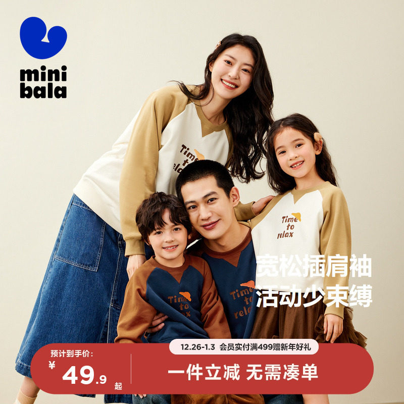 【mini亲子】迷你巴拉巴拉男女童宝宝春秋新款一家三口软卫衣