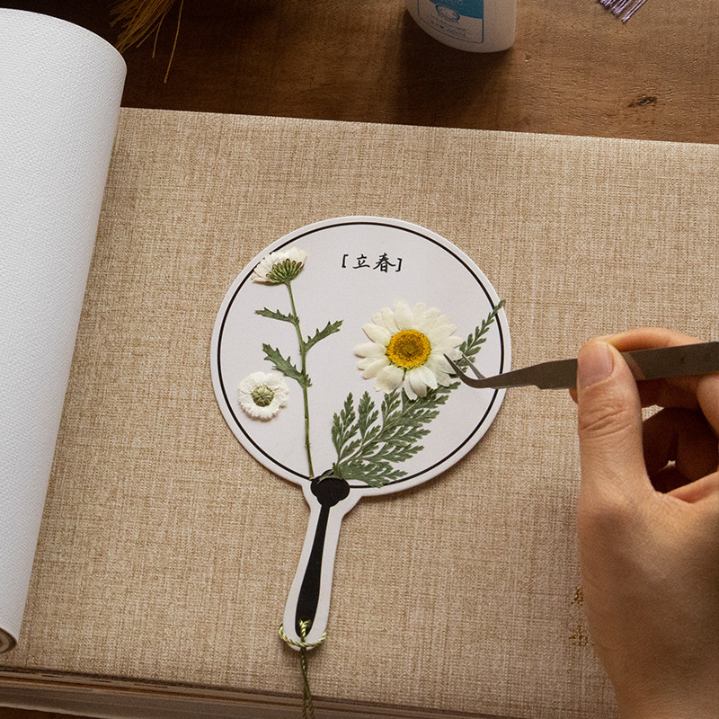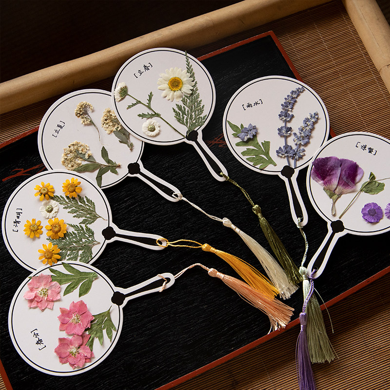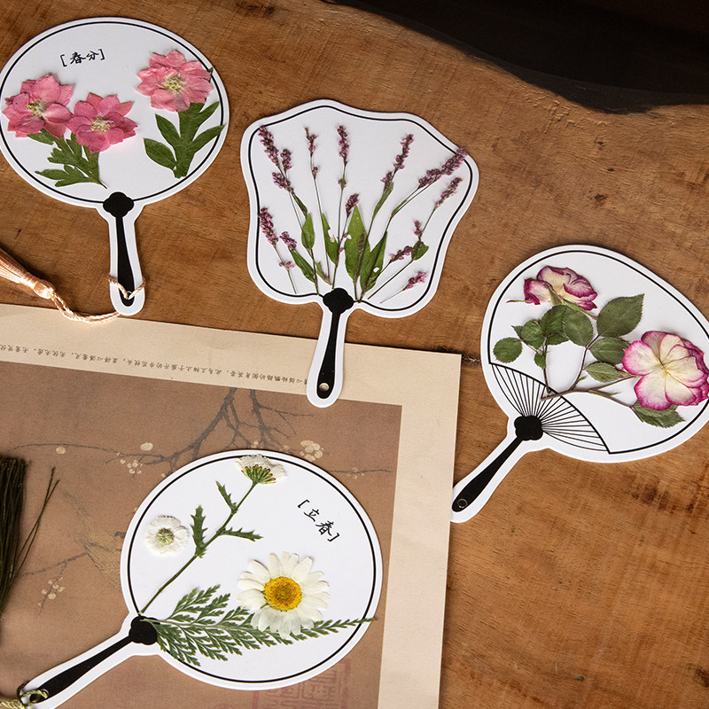 手绘空白扇子书签小卡片ins小清新流苏压花植物手写学生用干花幼儿园儿童纸质卡绘画纸古风手工自制diy材料包