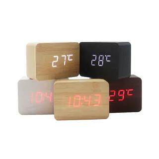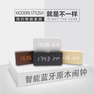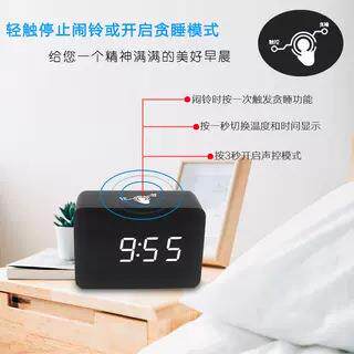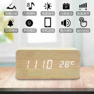 创意小程序充电闹钟学生用多功能电子钟夜光静音led木质时钟台钟