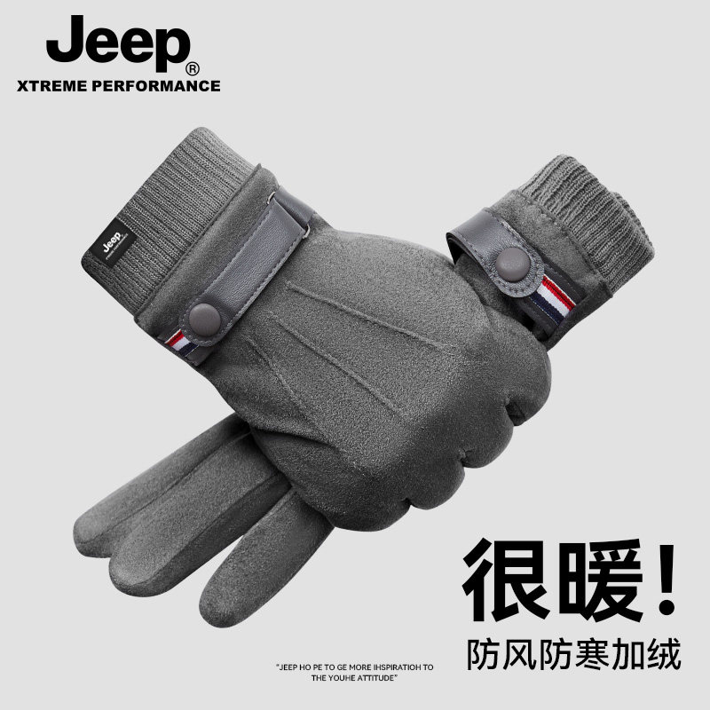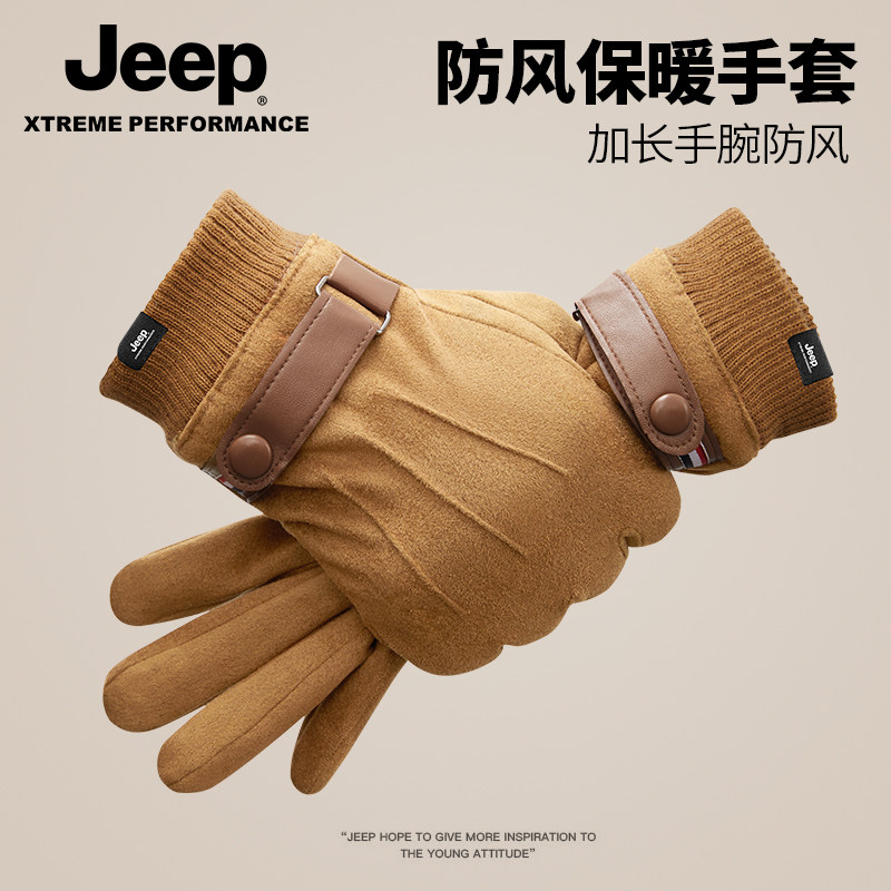 jeep吉普手套保暖防风户外骑行男士加绒手套冬可触屏学生开车防寒