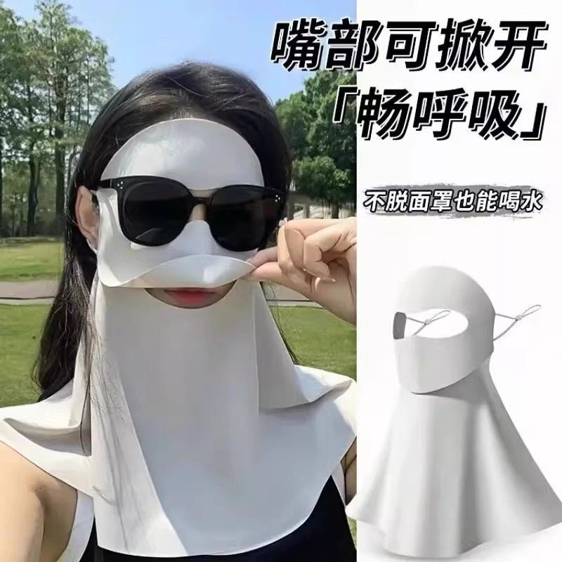 长款全脸防晒面罩护颈一体防紫外线透气可喝水骑行遮阳脸基尼女