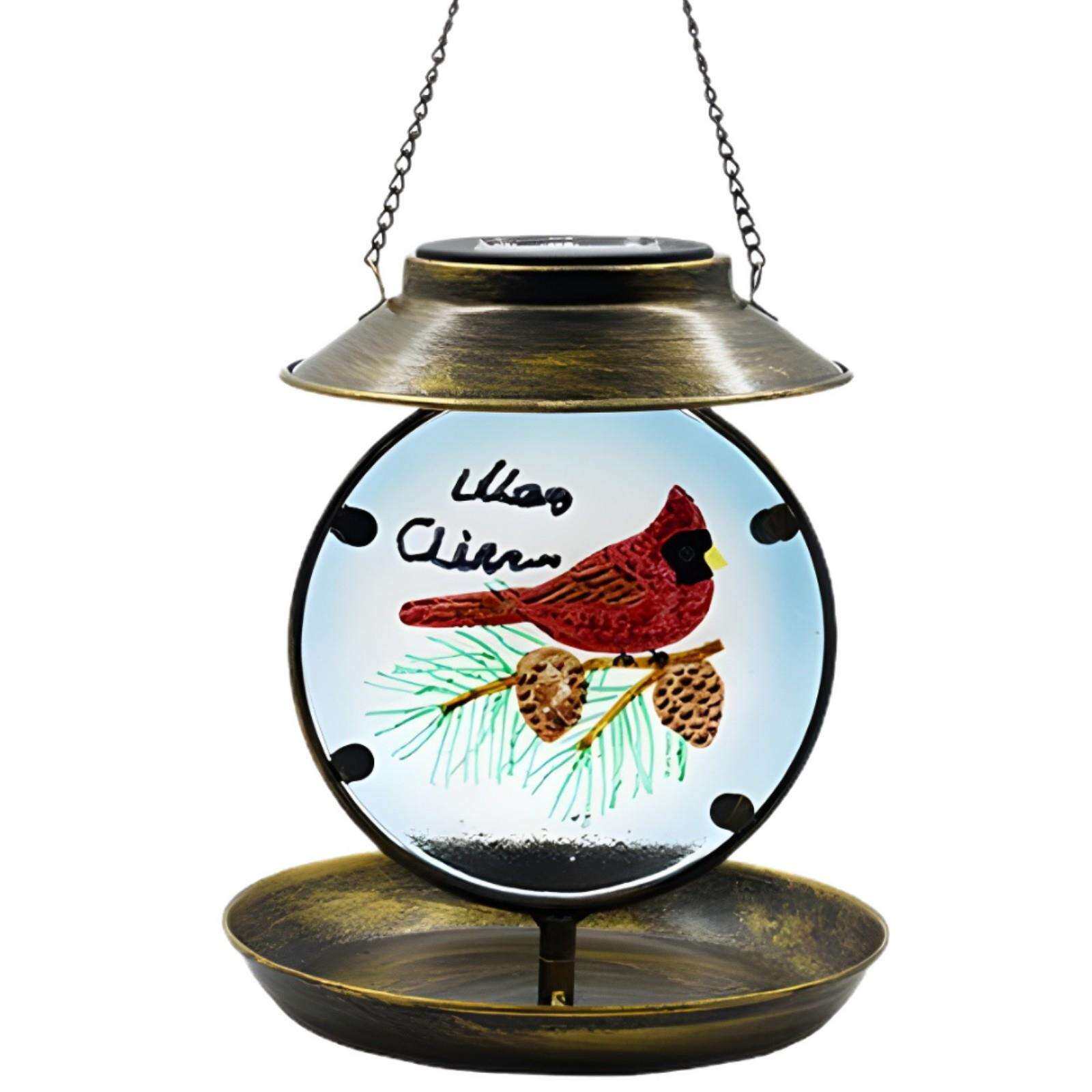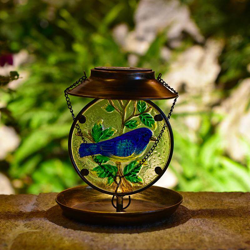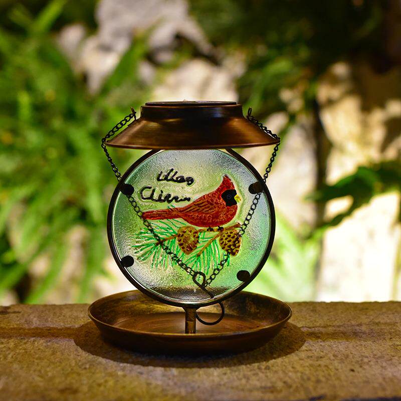 喂鸟器太阳能灯铁艺装饰户外摆件复古悬挂庭院玻璃鸟类喂食器灯