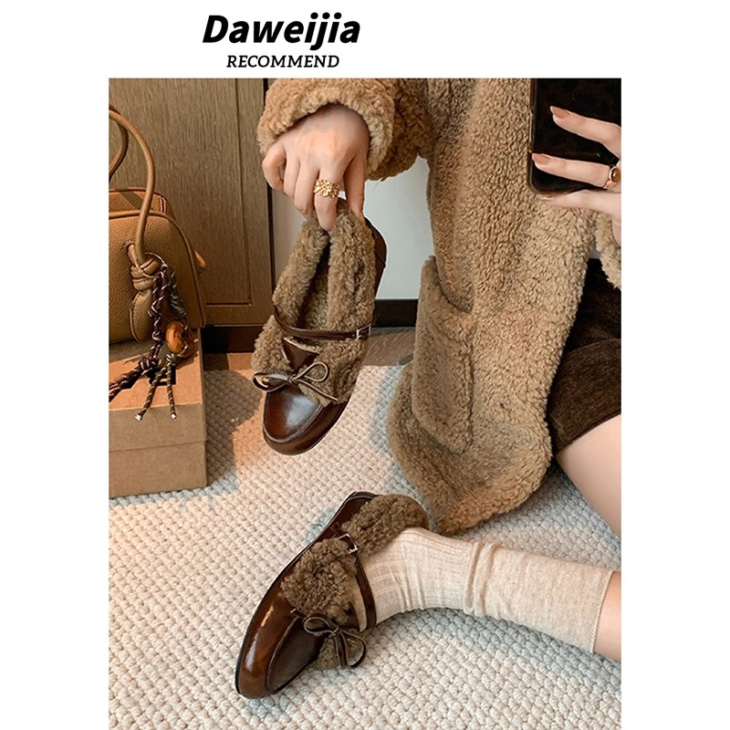 复古加绒深口小皮鞋女2025秋冬新款毛毛鞋豆豆乐福鞋单鞋保暖棉鞋