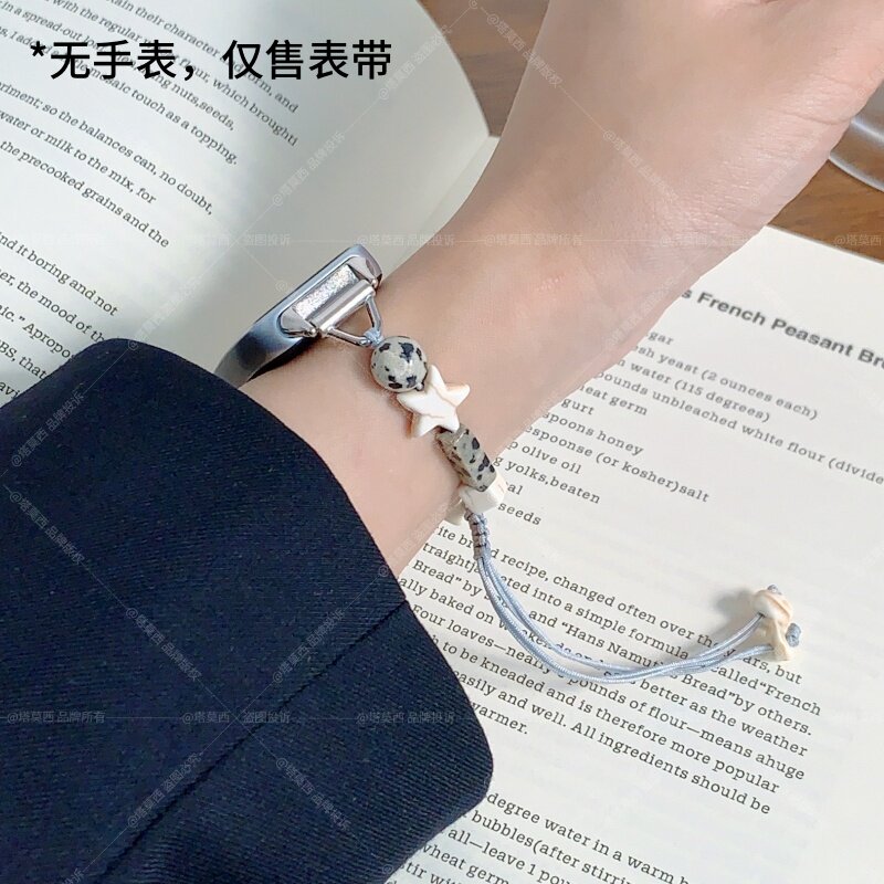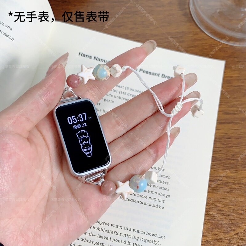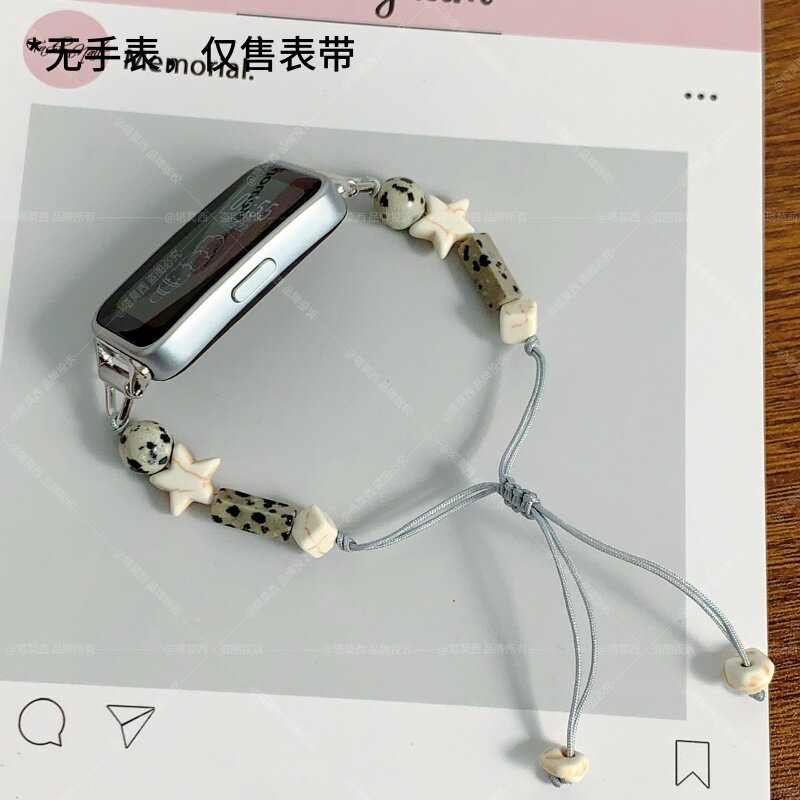 适用华为手环10/9/8/7/6表带串珠多巴胺星星荣耀腕带10/9/7diy替换手链手表带高级感配件编织玫瑰金黑色舒适