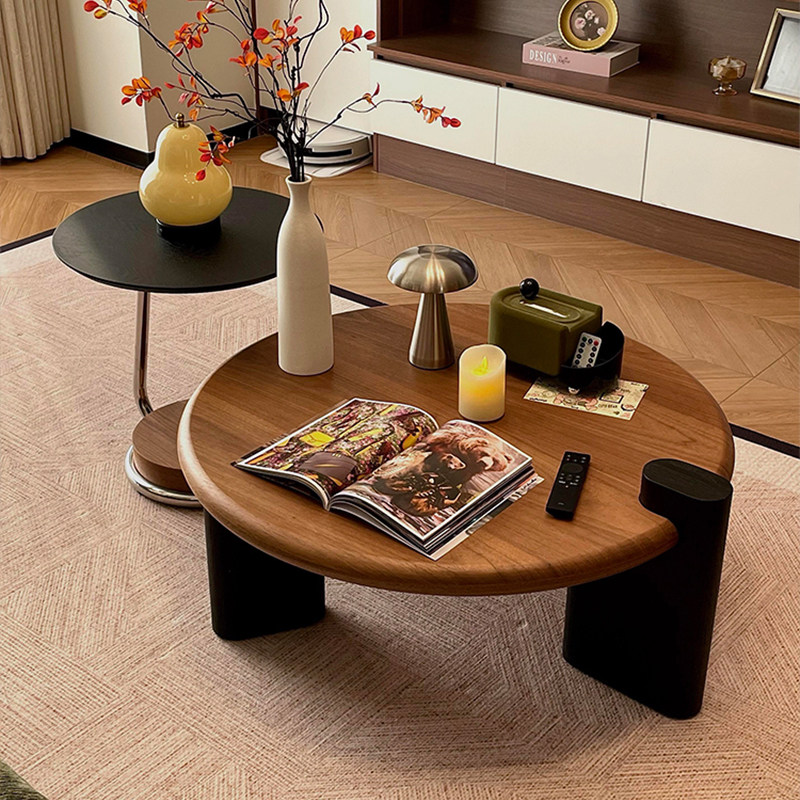 中古风高级感客厅家用圆形小户型高端茶几组合2026新款包豪斯茶几