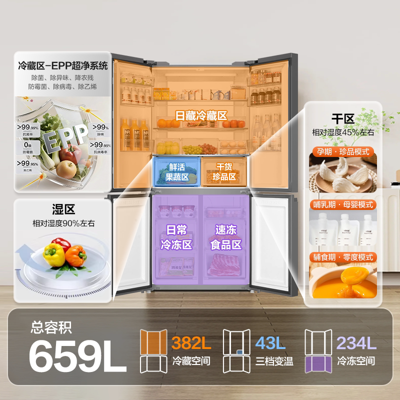 换新补贴海尔冰箱659升十字四开门超大容量一级无霜家用官方正品