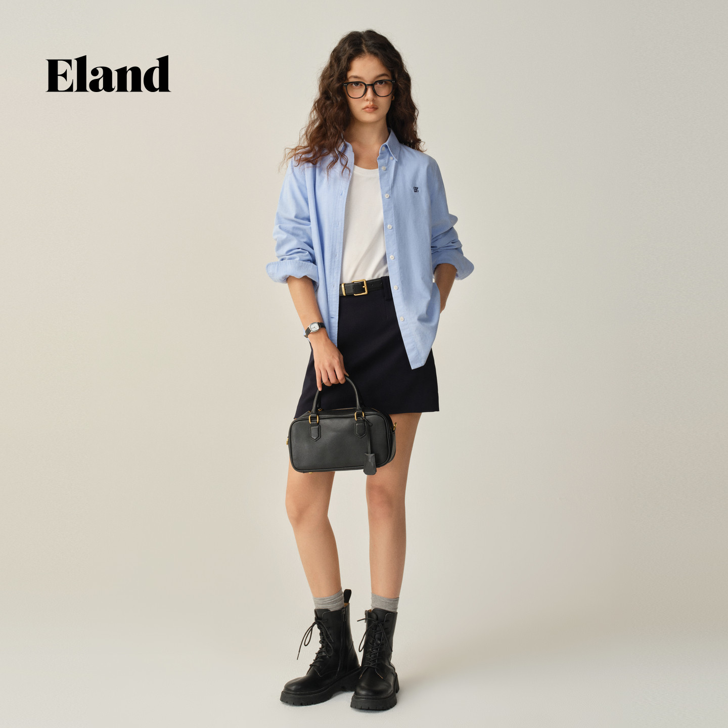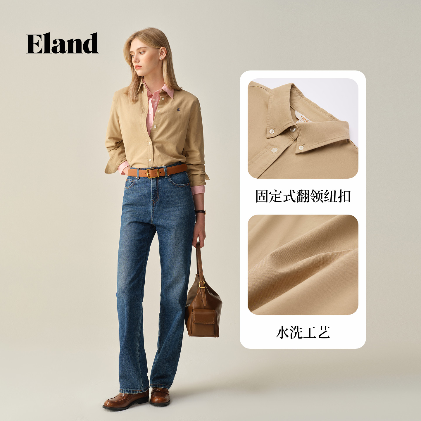 【100%棉】Eland衣恋衬衫女纯色长袖翻领上衣2025冬季新款