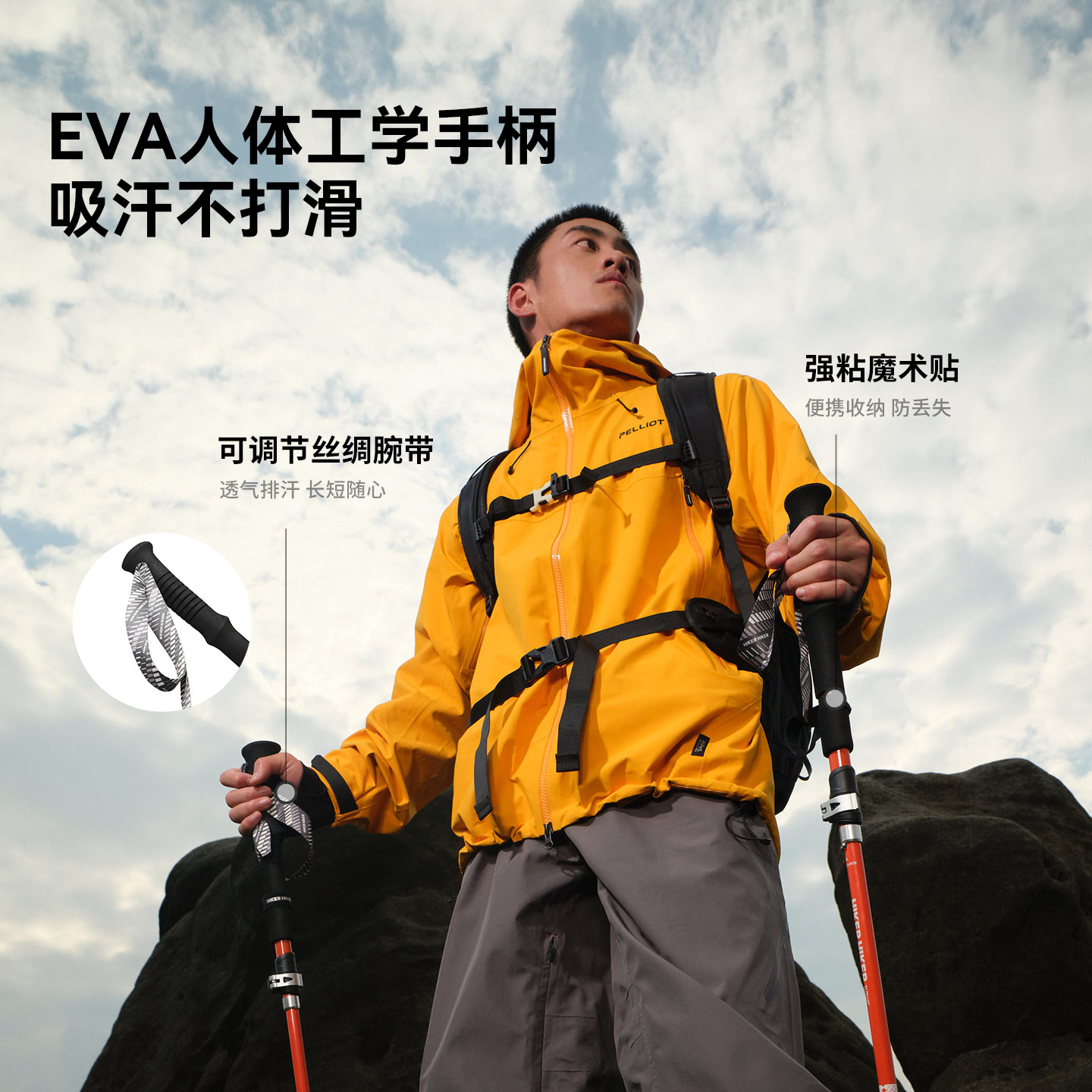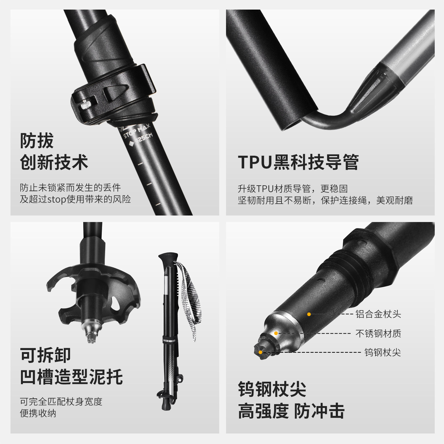 重量220g 节省25%体力 超轻防滑折叠登山杖