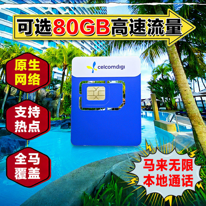 马来西亚5G/4G电话卡手机上网celcom无限流量卡吉隆坡仙本那亚庇