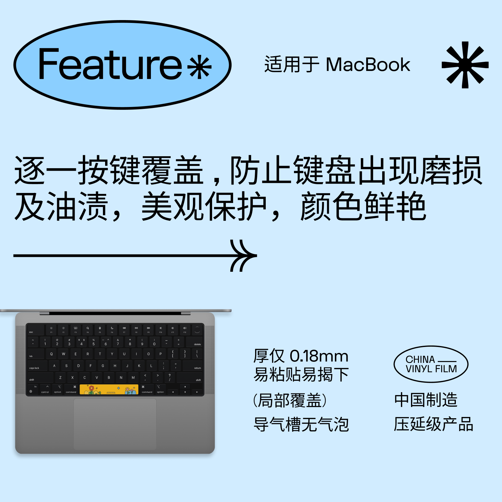 SkinAT适用于苹果笔记本空格键贴膜 MacBook Pro M5单个按键贴 Mac Pro14/16电脑空格保护膜