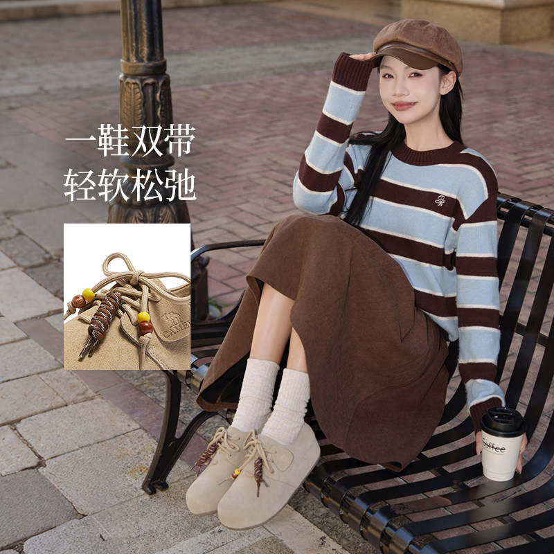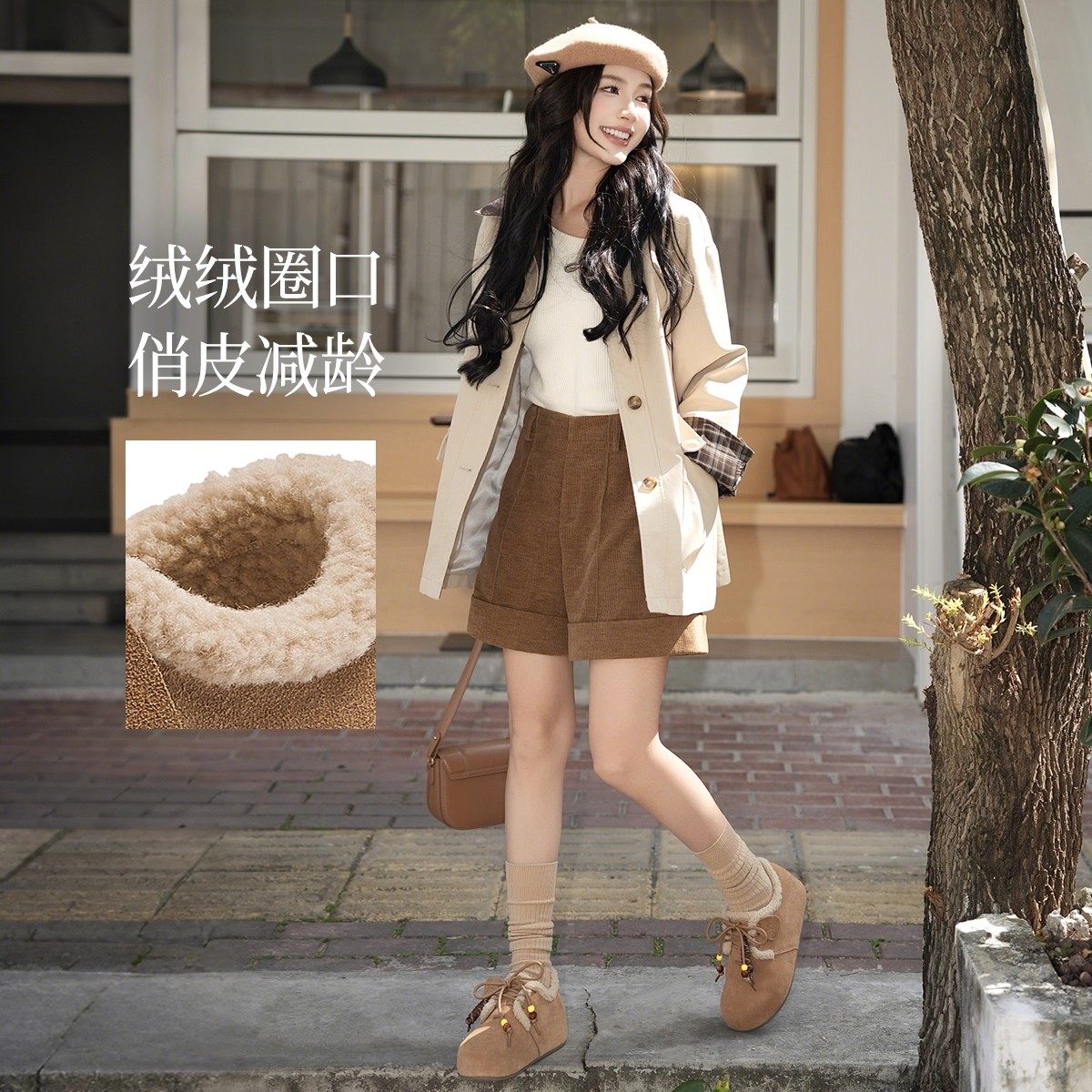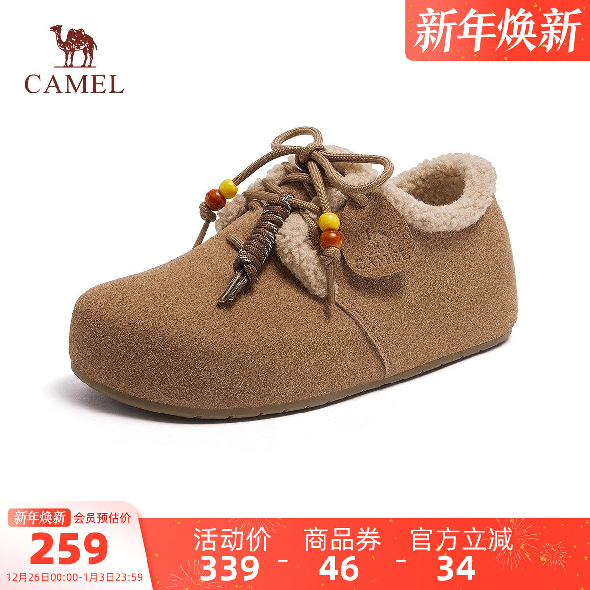 骆驼女鞋2025冬季新款勃肯鞋女款百搭加绒毛里保暖棉鞋休闲毛毛鞋