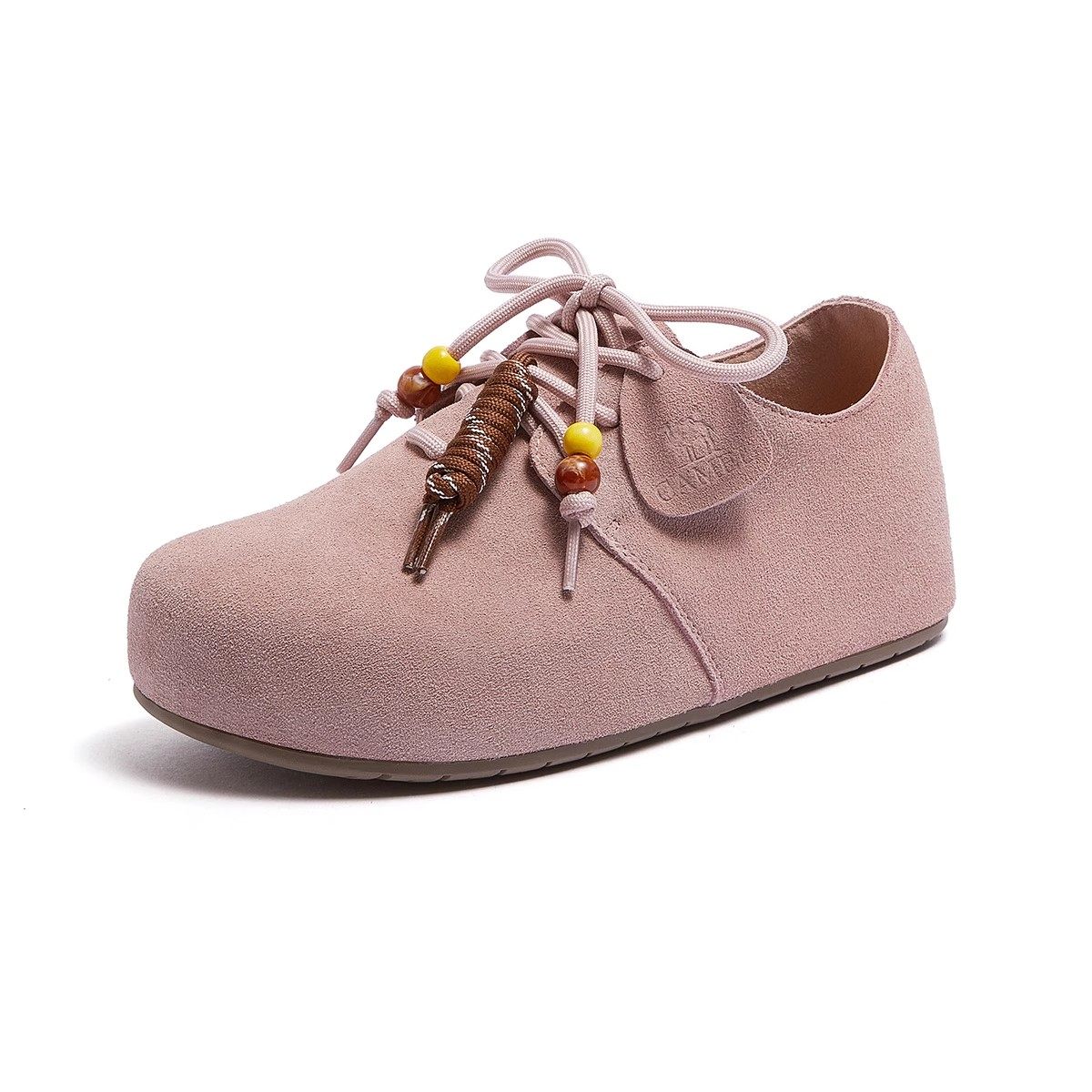 磨砂牛皮松糕厚底大头勃肯鞋女复古真皮圆头增高一脚蹬懒人毛毛鞋