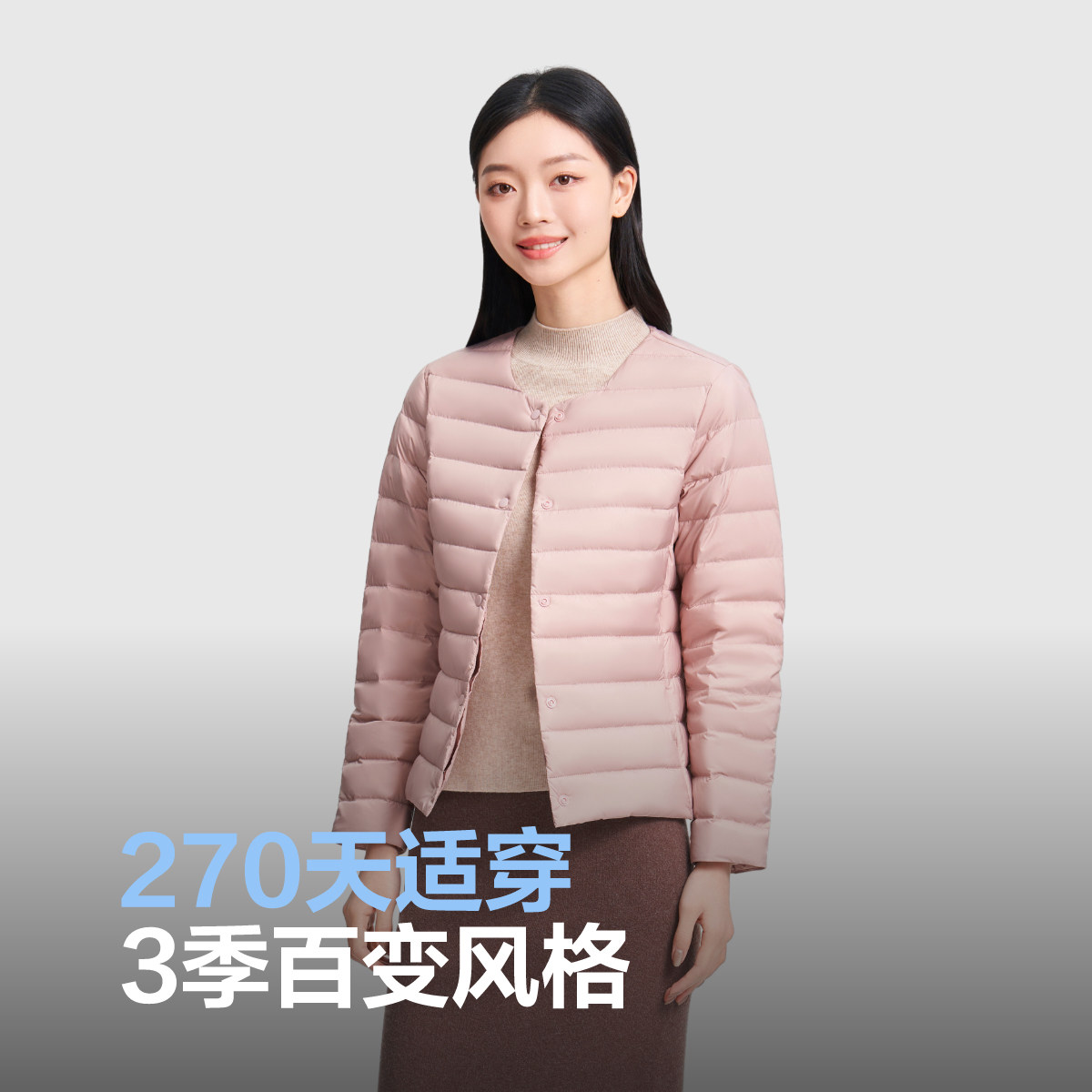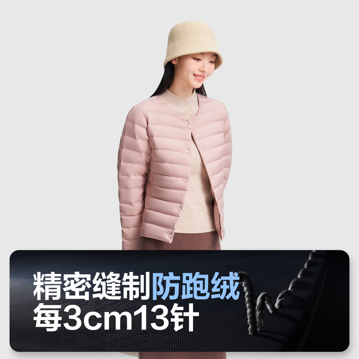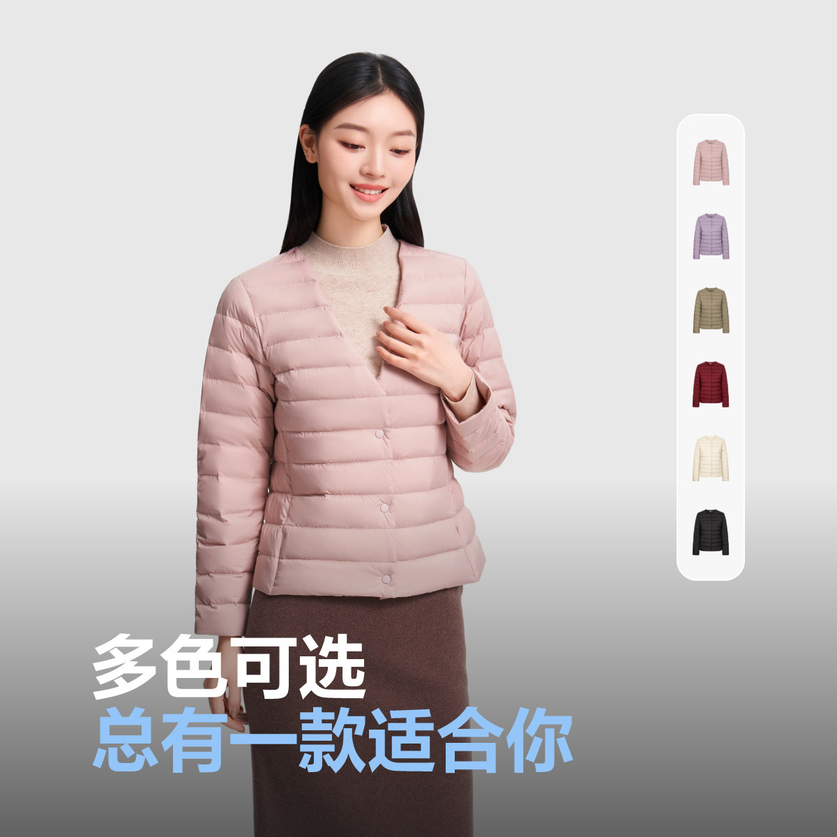 拉夏贝尔2025轻薄羽绒服女短款冬季韩版修身圆领无领内胆保暖外套