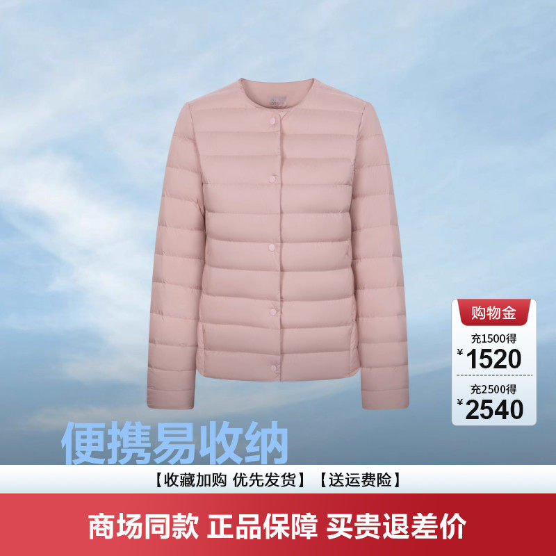 鸭鸭轻薄羽绒服女2025年秋冬反季短款立领修身舒适上衣内胆外套J
