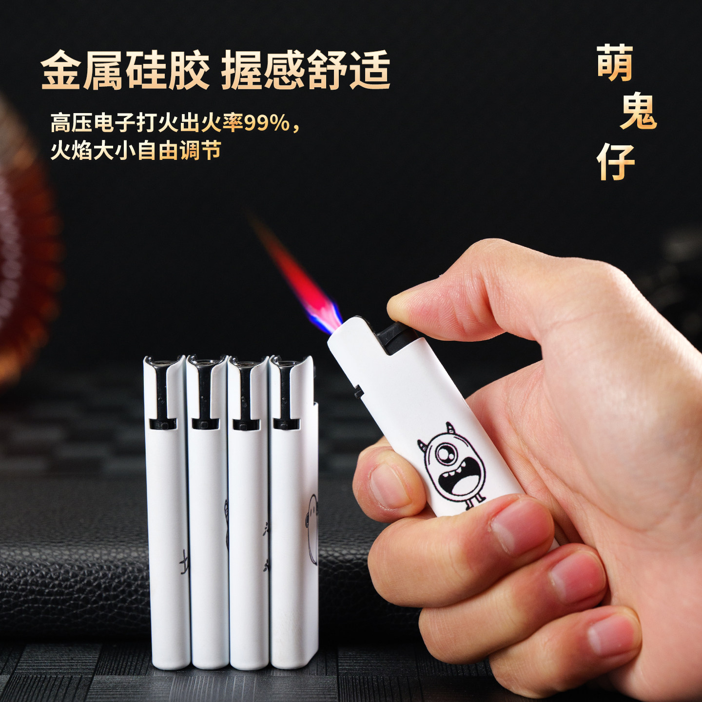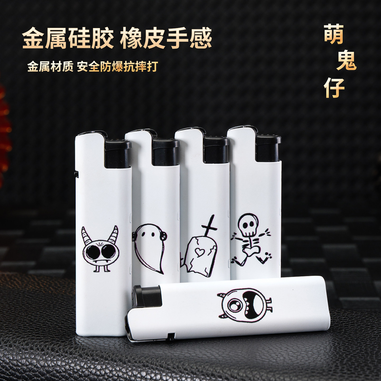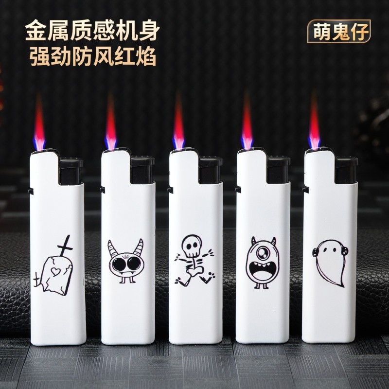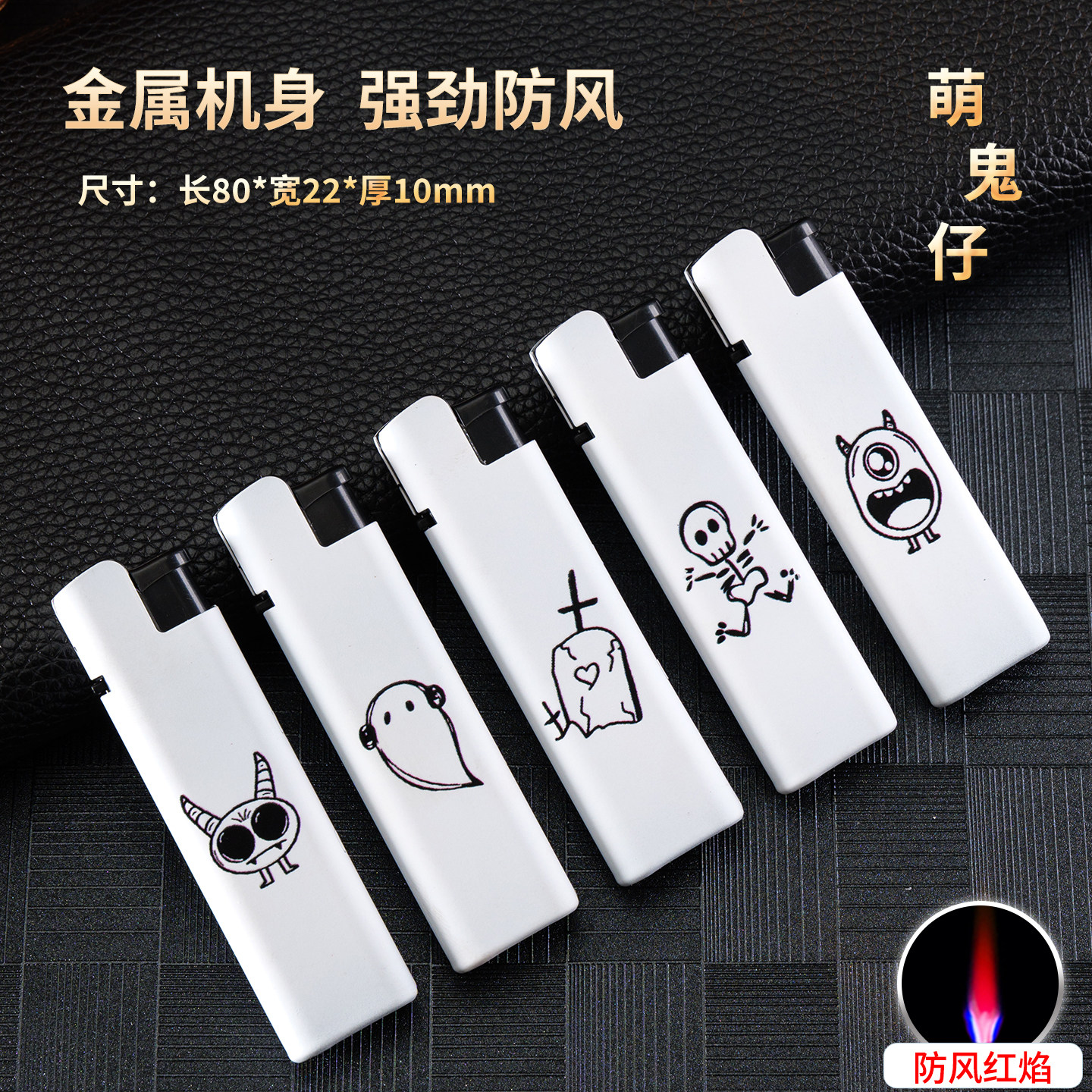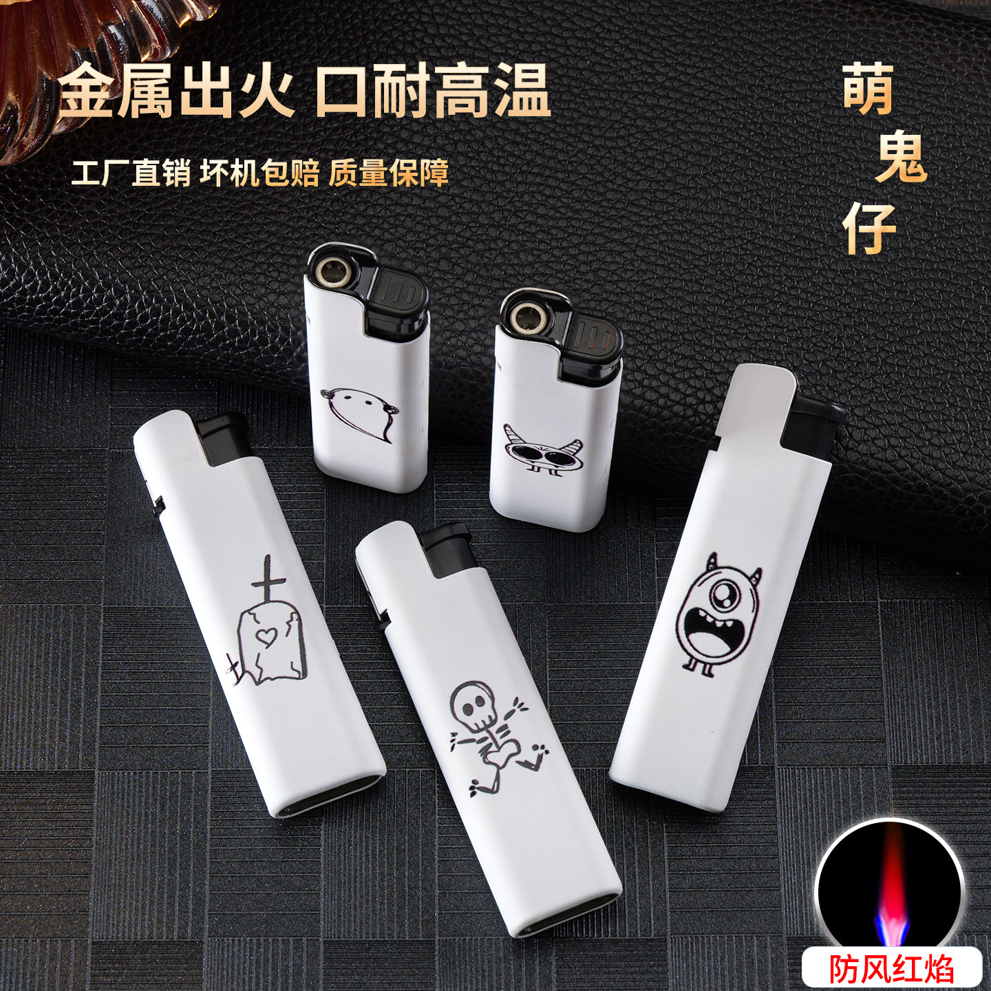 个性图案萌鬼仔金属防风一次性红焰可充气打火机家用商超批发火机