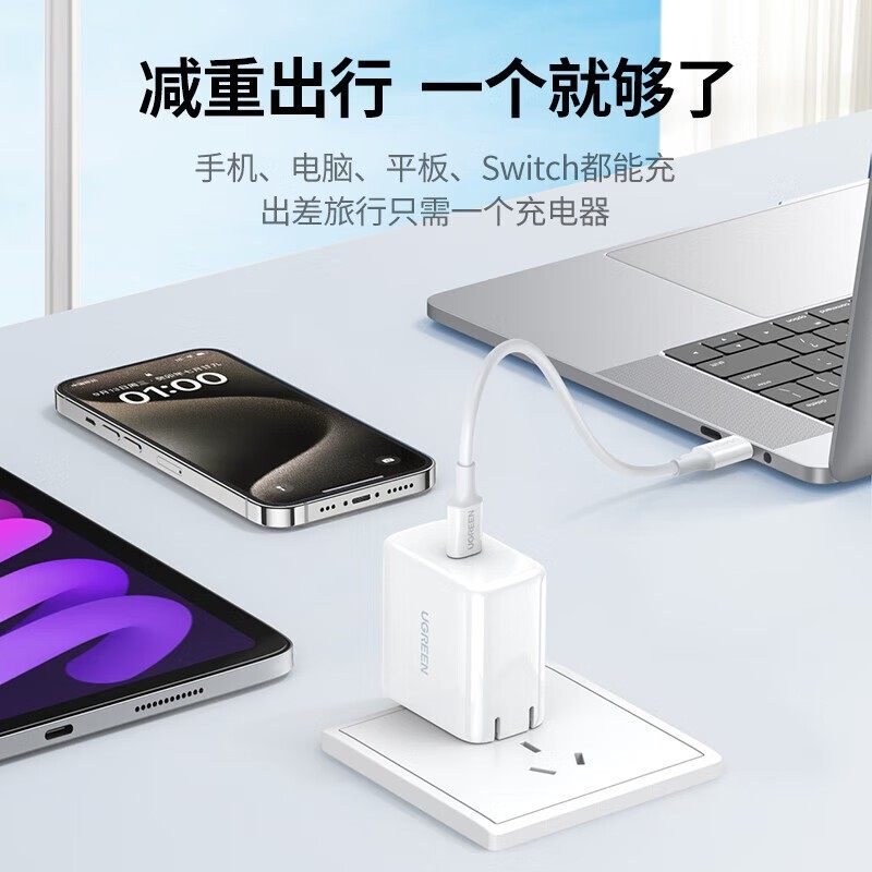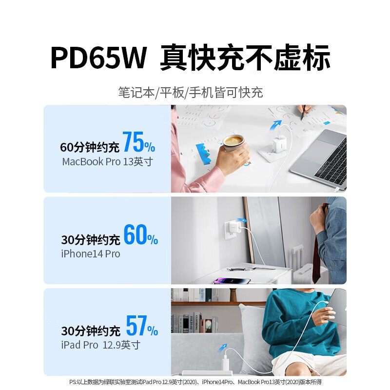 绿联(UGREEN)笔记本充电器PD65W适用苹果MacBookPro Ari华为电脑快充头