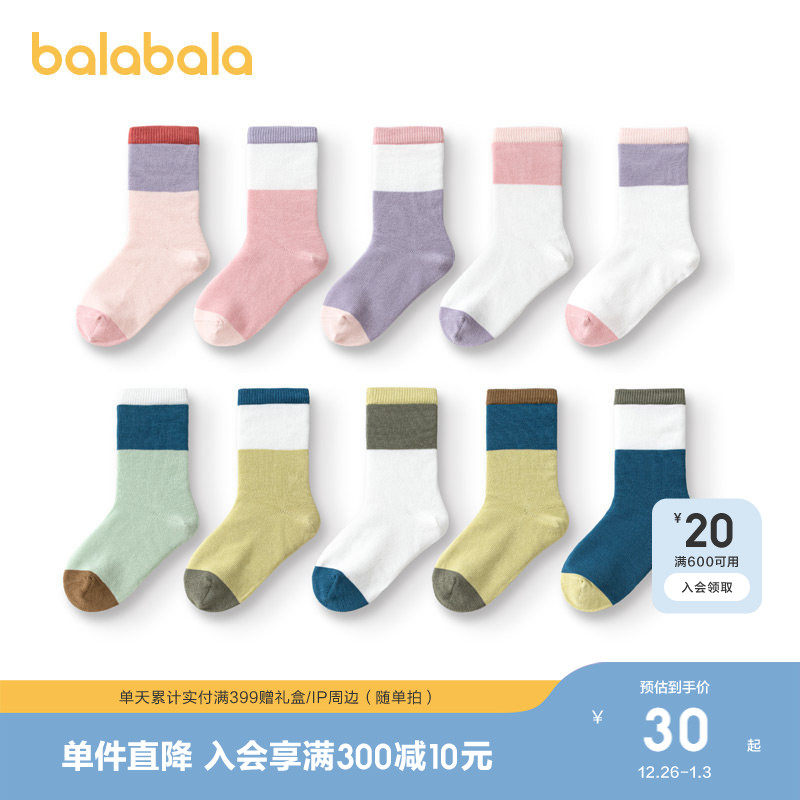 巴拉巴拉儿童袜子男童女童棉袜儿童宝宝学生中筒打底五双装春秋装