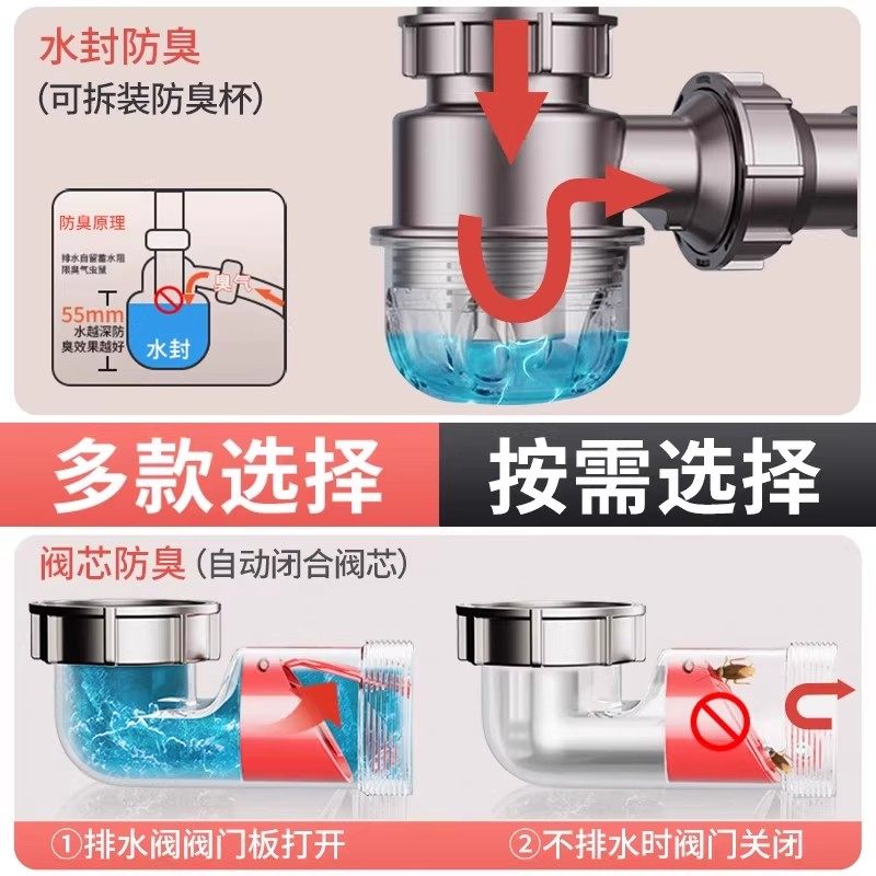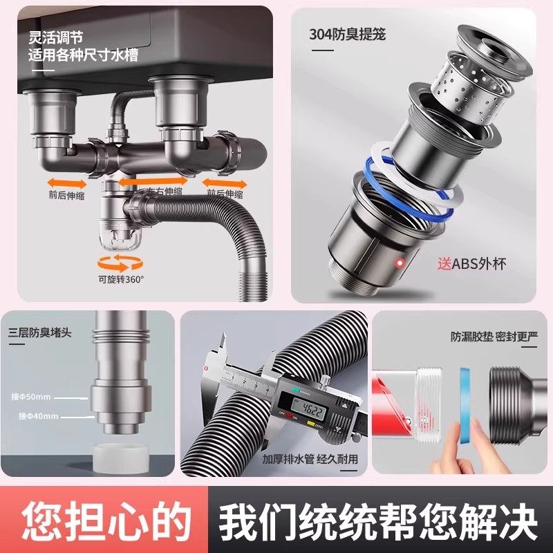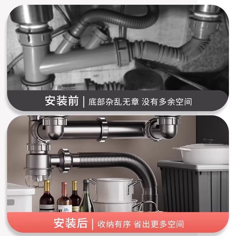 厨房洗菜盆下水管配件水槽单双槽防臭排水三通洗碗池下水器全套装