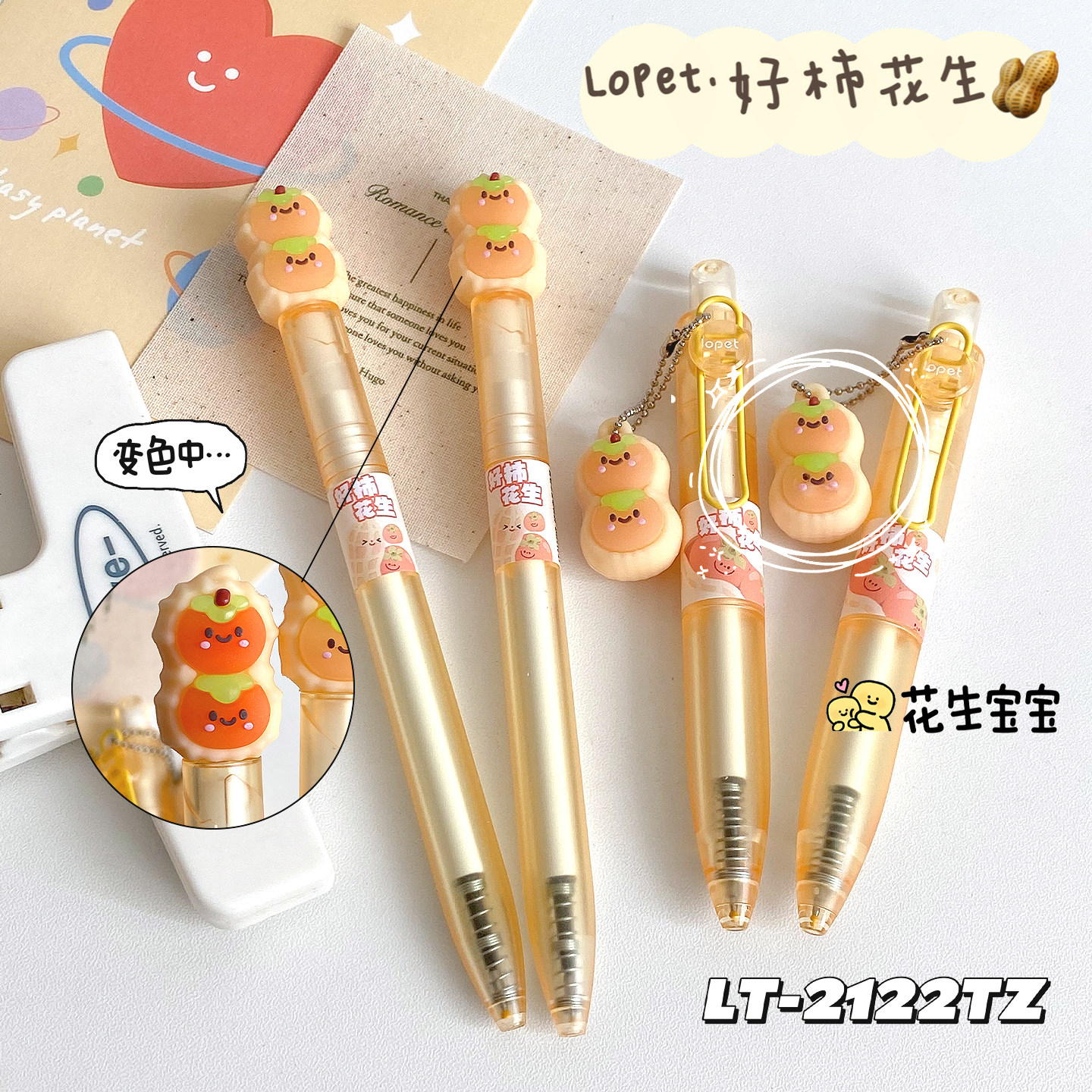 lopet乐派好柿花生变色扭扭笔新款高颜值ins风创意旋转出芯中性笔学生考试用可爱顺滑速干ST头刷题笔0.5黑笔