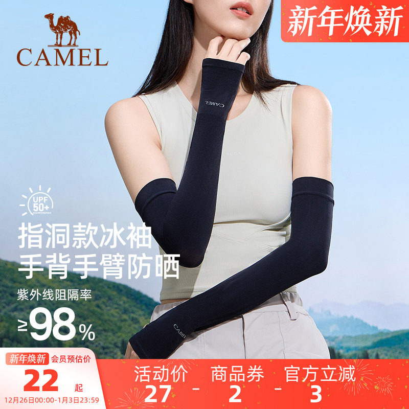 骆驼夏季防晒袖套女防紫外线骑车防晒手套薄款冰丝护臂男骑行冰袖