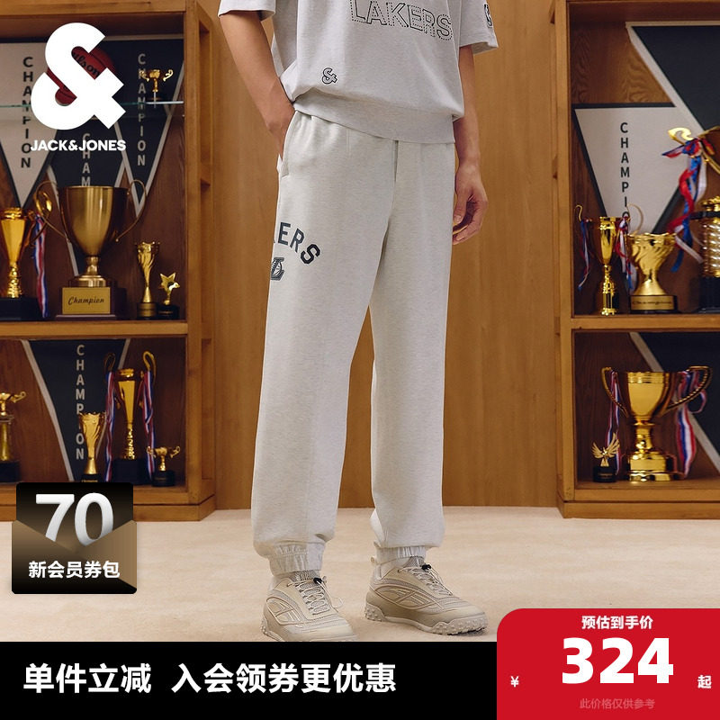 杰克琼斯奥特莱斯NBA联名男装休闲裤秋季新款植绒胶印宽松束脚裤