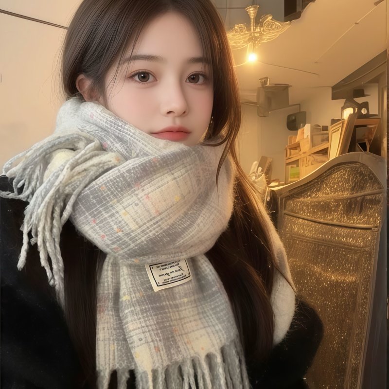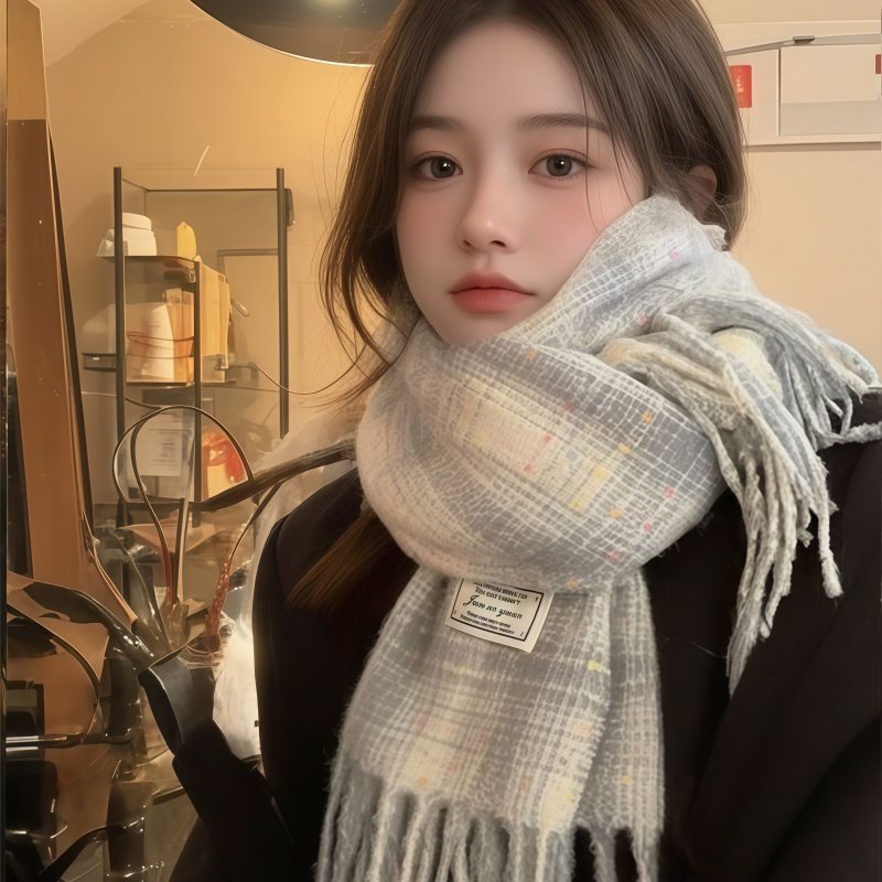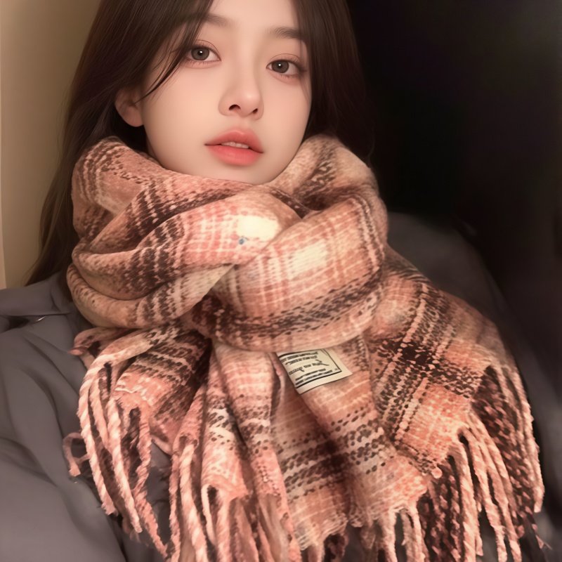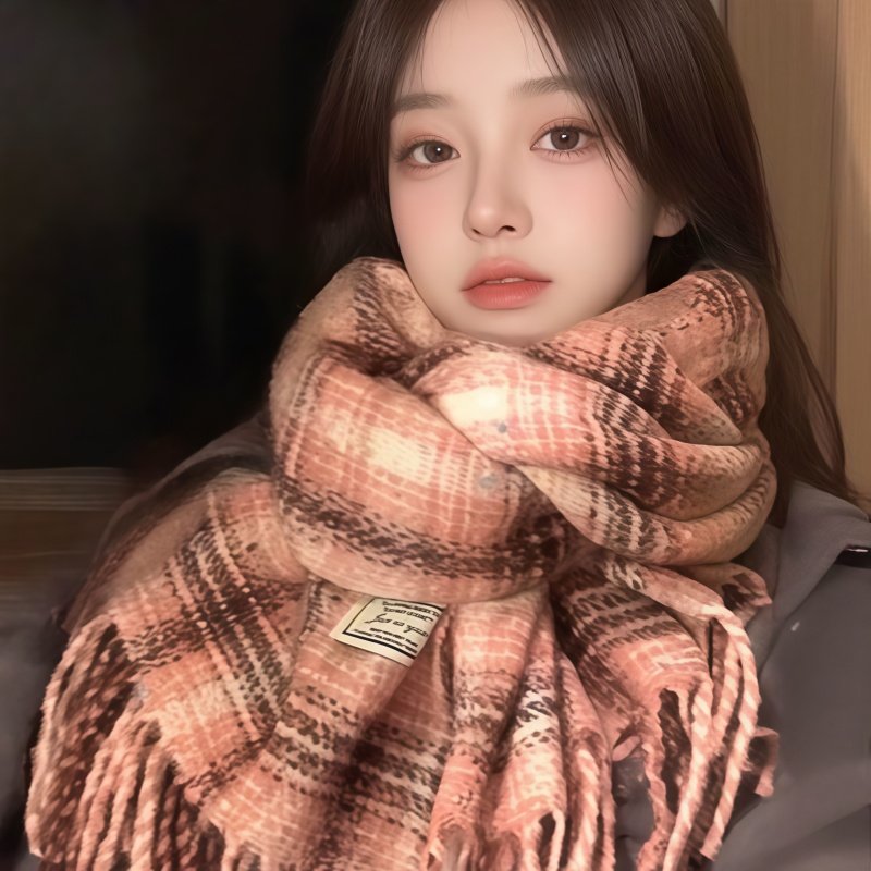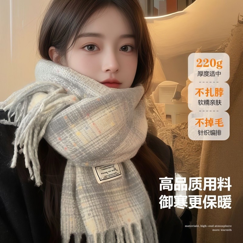 高级感格子仿羊绒围巾女秋冬季保暖披肩显白学生情侣款软糯格纹