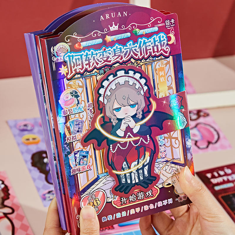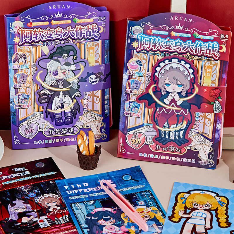 美妆穿搭免裁剪换装贴纸阿软元气少女化妆秀贴画儿童卡通手工素材