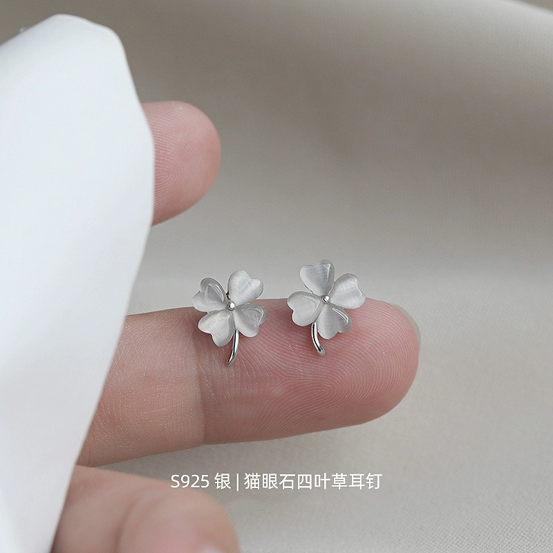 【巷南】925纯银四叶草耳钉轻奢小众设计高级感耳环女夏简约耳饰