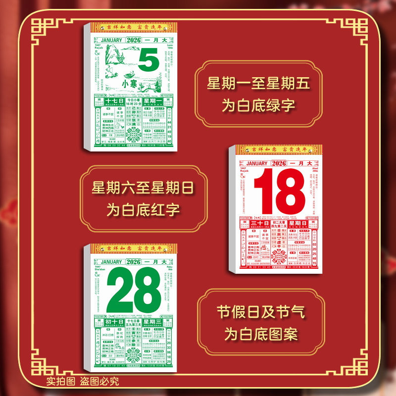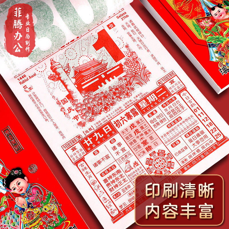 2026年日历新款马年大本老黄历挂历老人日历家用挂墙大号传统黄历老式手撕大号万年历挂式农历年历老皇历台历