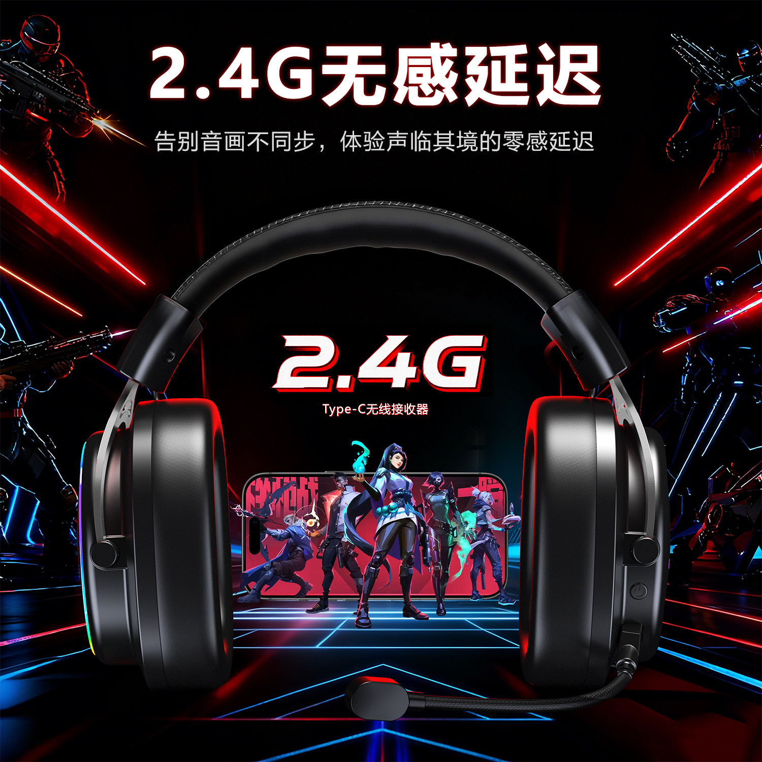 觅声阿尔法2.4G三模无线游戏耳机头戴式蓝牙台式电脑fps电竞专用