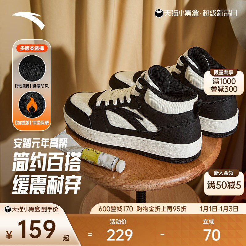 安踏元年丨经典加绒高帮板鞋棉鞋男冬季黑白色运动鞋百搭滑板鞋