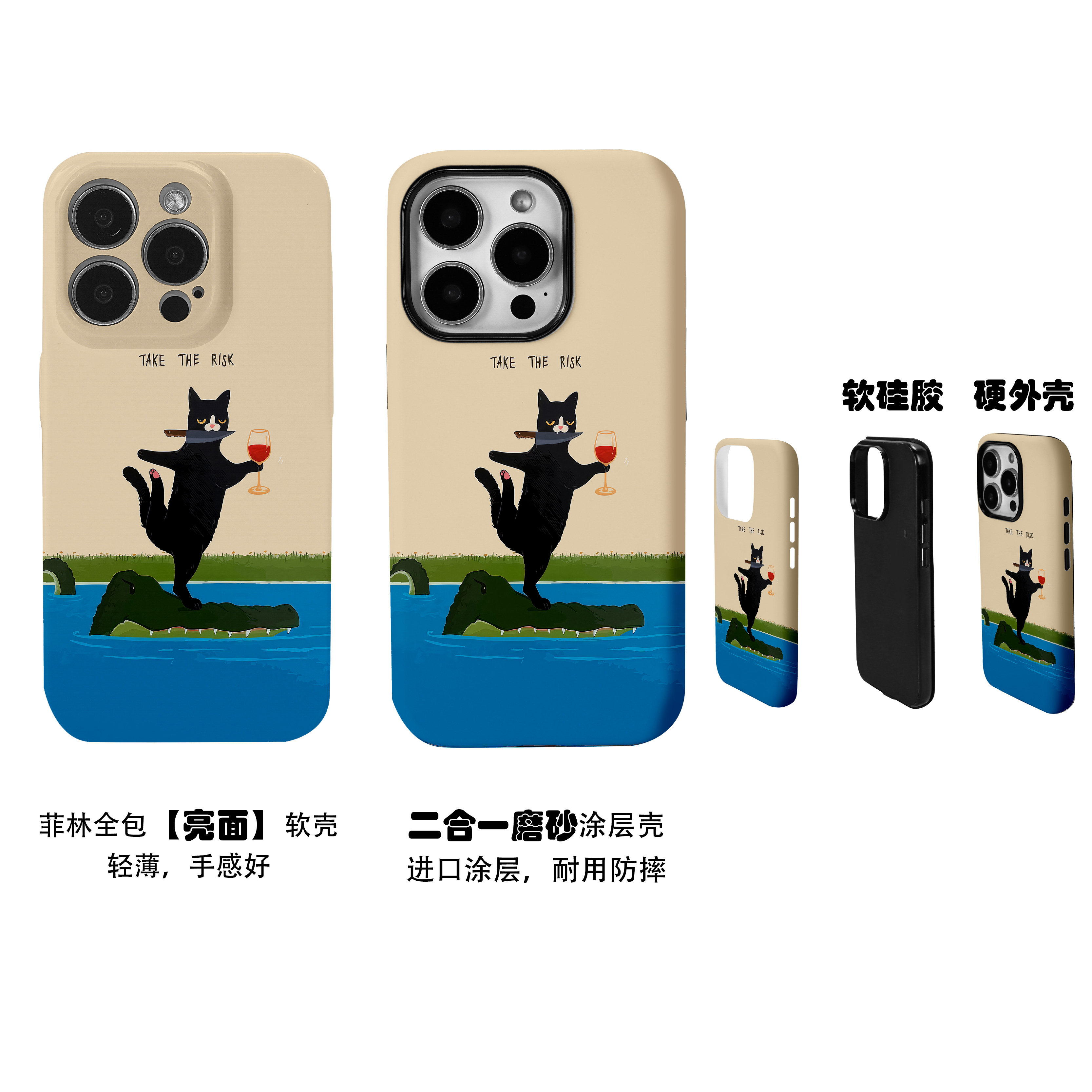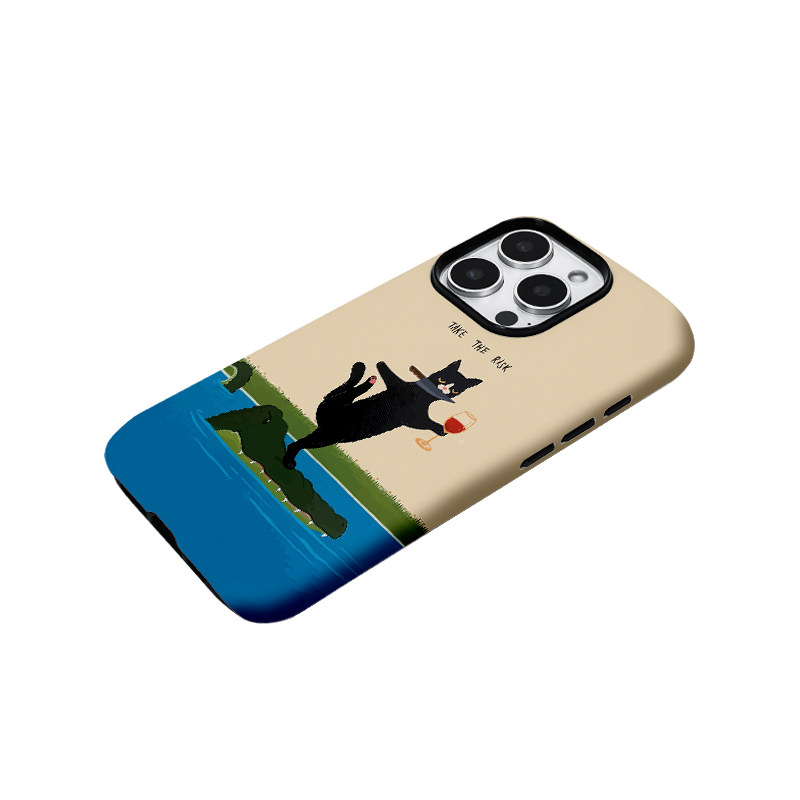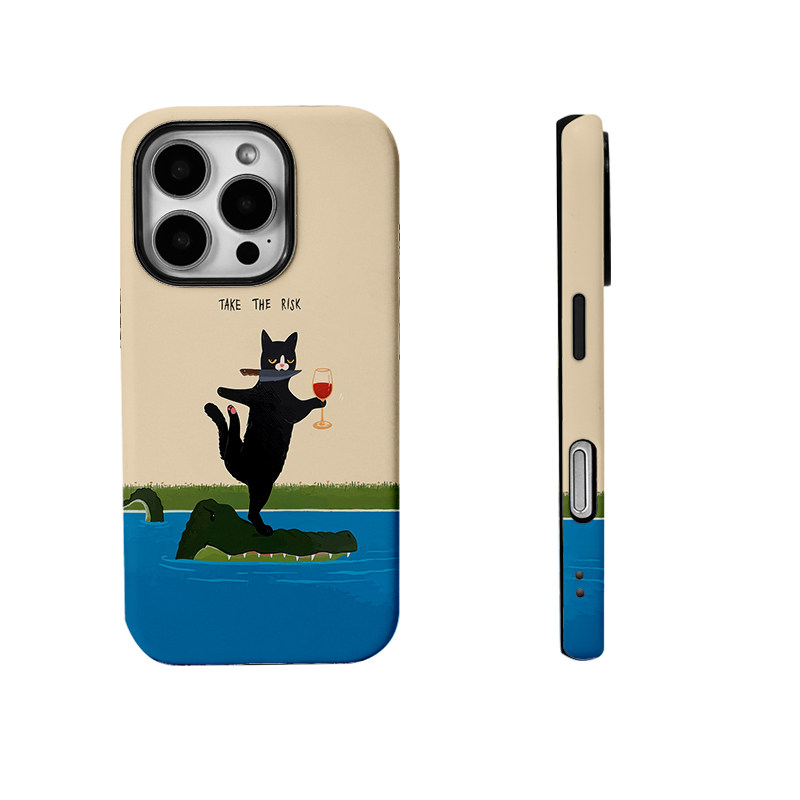 鳄鱼背上潇洒冒险猫咪菲林二合一手机壳适用苹果17nova14华为p70mate60小米15opporen14ovivo荣耀300iPhone16