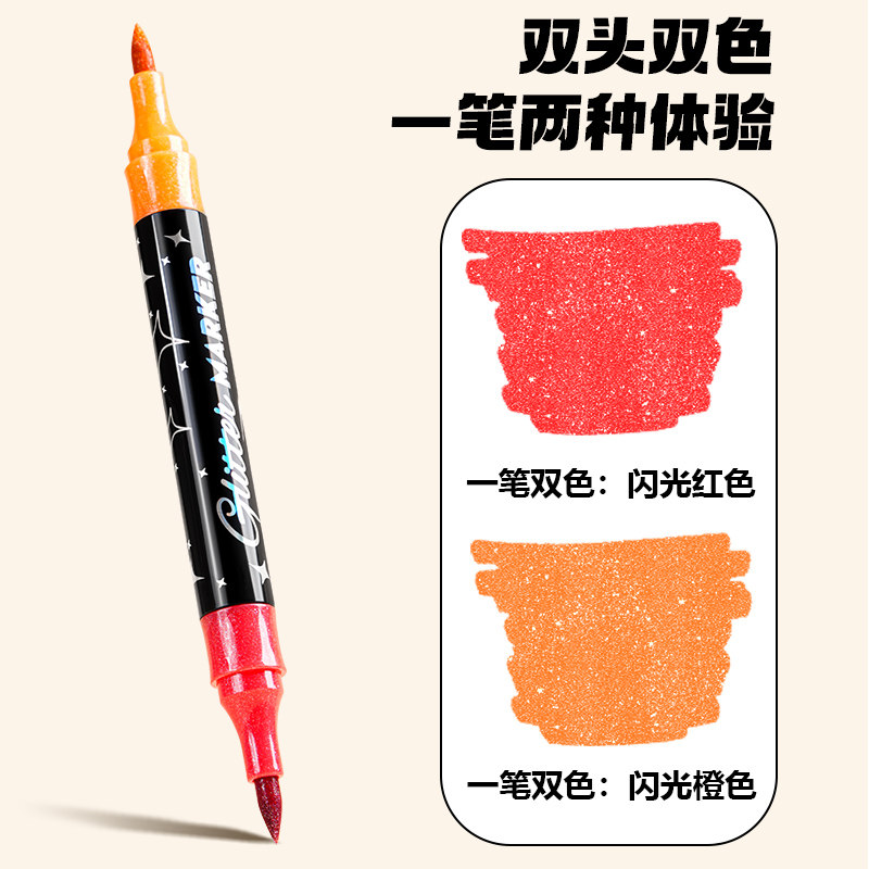 安格尔闪光马克笔笔荧光带闪粉闪闪荧光笔闪粉水彩笔记号笔珠光绘画亮片彩笔儿童学生专用彩绘手账笔炫彩笔