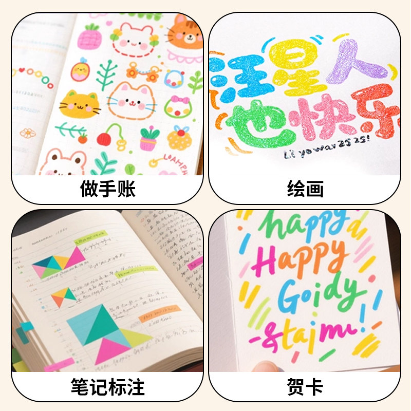 直液式丙烯马克笔软头小学生美术专用水彩笔儿童颜色笔可水洗24色画笔不透色48绘画可叠色彩色笔36水性丙烯笔