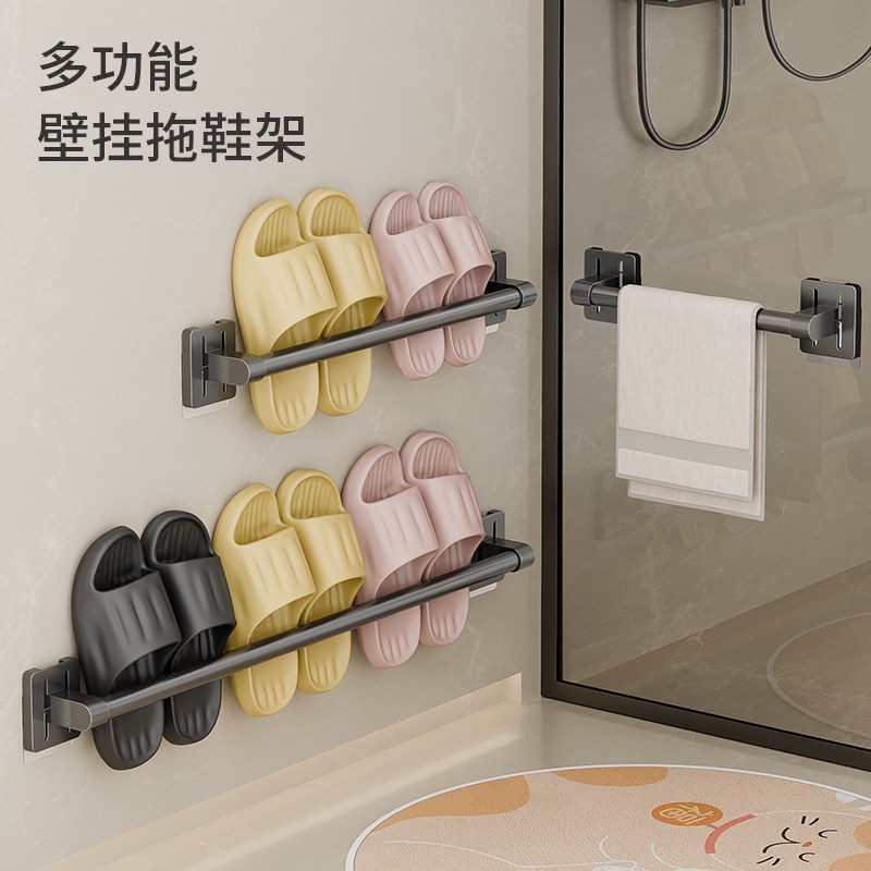 吸盘浴室拖鞋架免打孔卫生间伸缩毛巾挂杆壁挂式沥水架挂架置物架