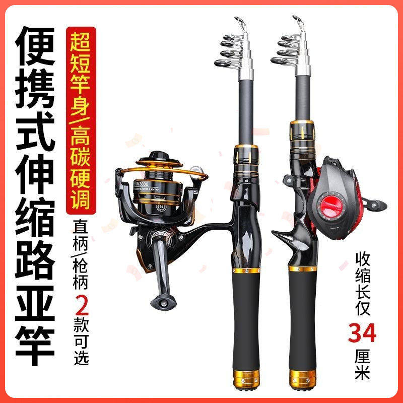 伸缩路亚竿套装超短便携旅行鱼竿一整套迷你小海竿超大导环路滑竿