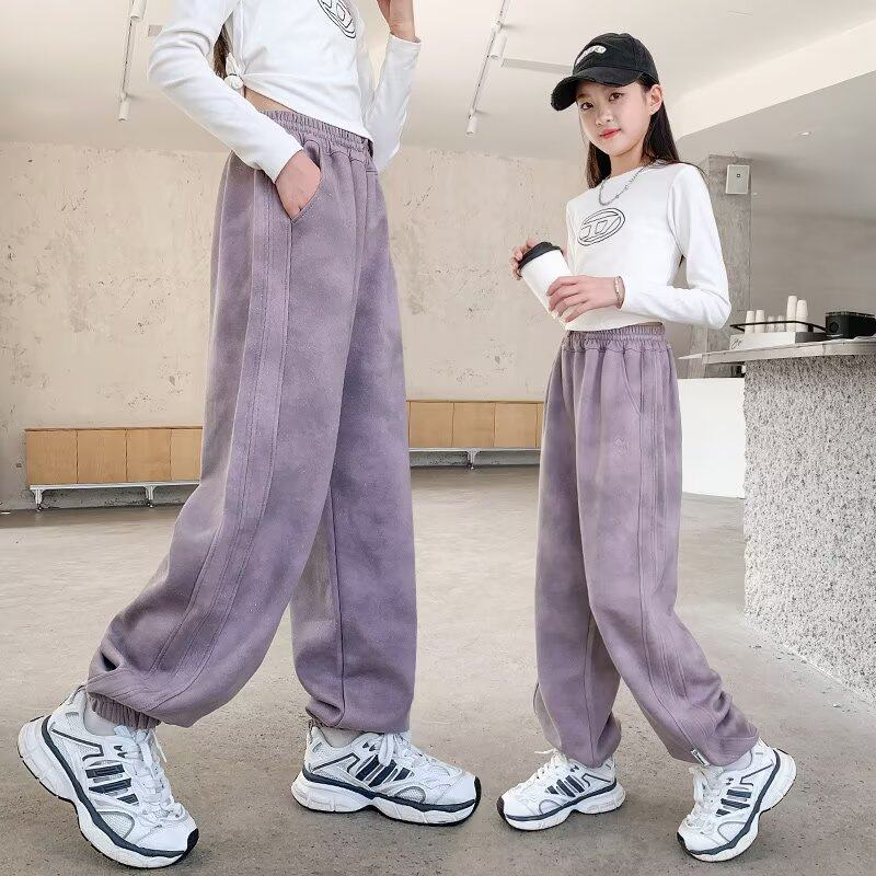 儿童运动束脚卫裤秋冬新款秋装季女童裤子加绒中大童女孩长裤外穿