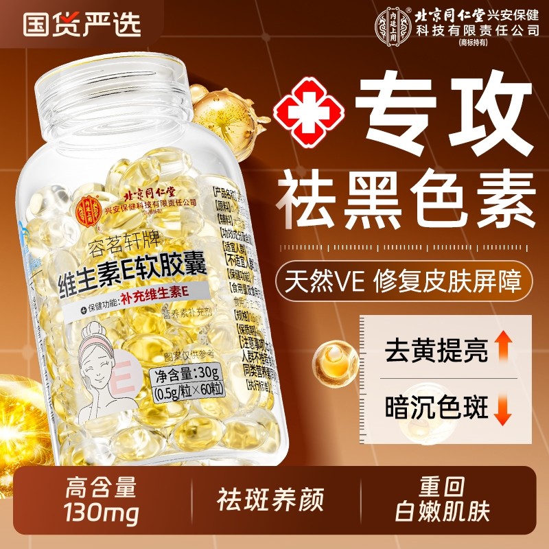 北京同仁堂维生素e软胶囊祛脸搭c片黄褐斑官方旗舰店正品维生素E