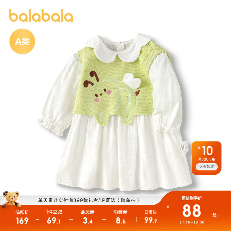 巴拉巴拉宝宝秋装婴童女童连衣裙子套装两件套休闲洋气时尚甜美萌