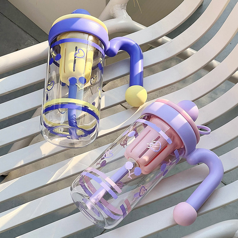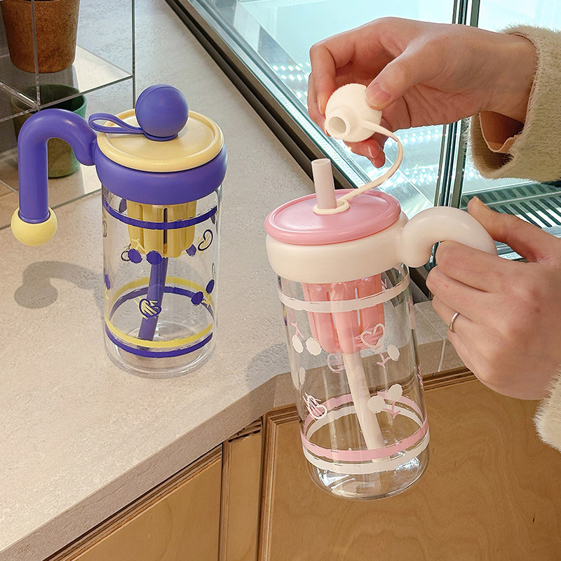 可爱卡通玻璃杯大容量水杯2024新款女杯子办公室家用牛奶杯奶茶杯