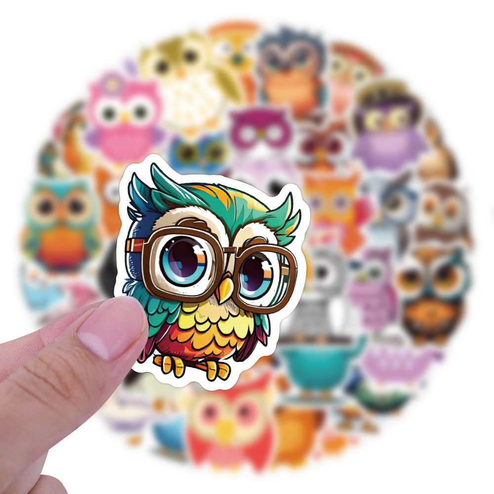 60张新款可爱动物猫头鹰卡通涂鸦贴纸汽车笔记本电脑手机壳电动车行李箱吉他玻璃水杯滑板自行车贴画儿童防水