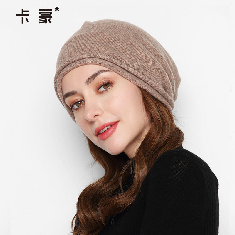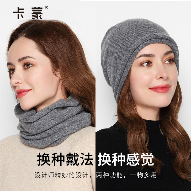 卡蒙羊毛羊绒高领套头围脖女士帽子围脖一体冬天保暖长款毛线脖套
