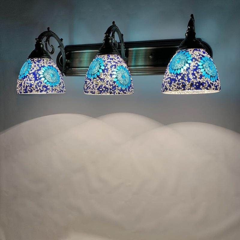 地中海镜前灯复古异域美式梳妆台卫生间化妆镜蒂凡尼三头镜前灯