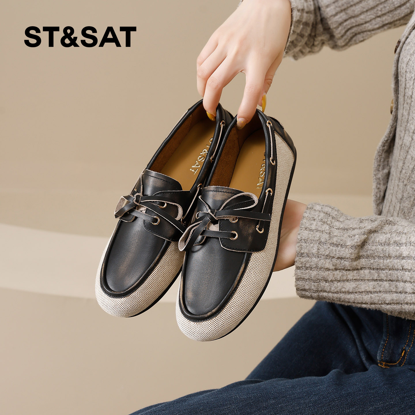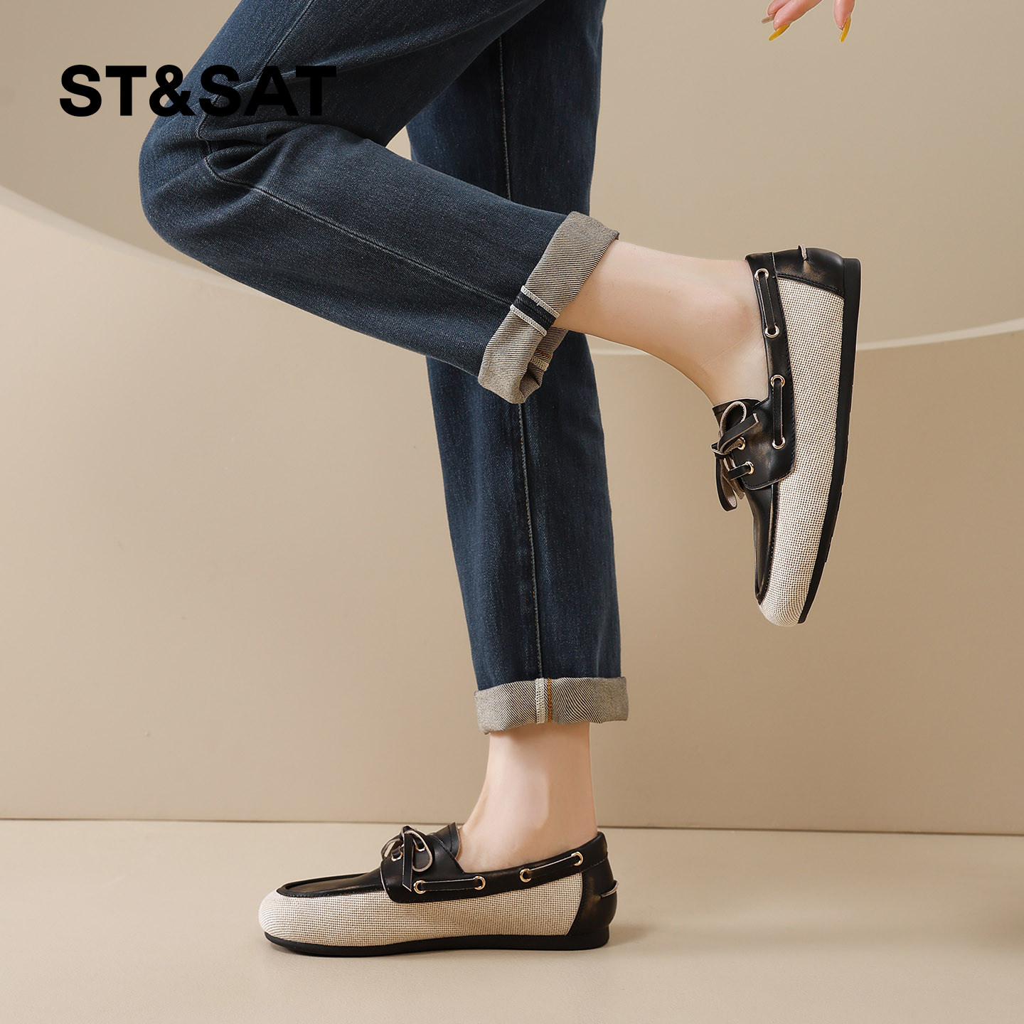 星期六乐福鞋女2025秋季新款女鞋女款爆款鞋子平底英伦软底豆豆鞋