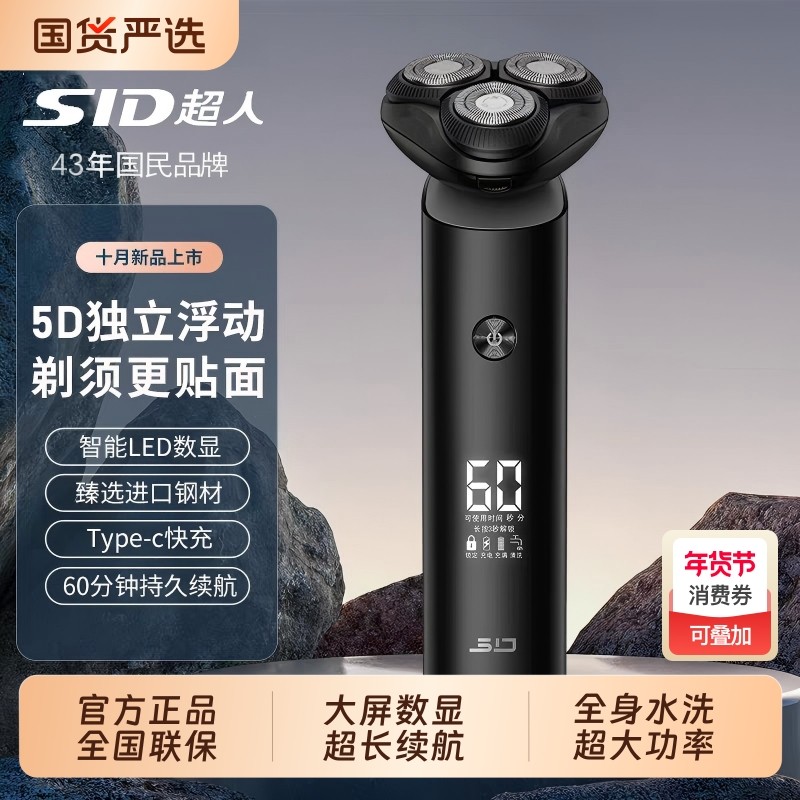 超人剃须刀电动刮胡刀10W智能剃胡刀胡须刀送男友官方正品生日