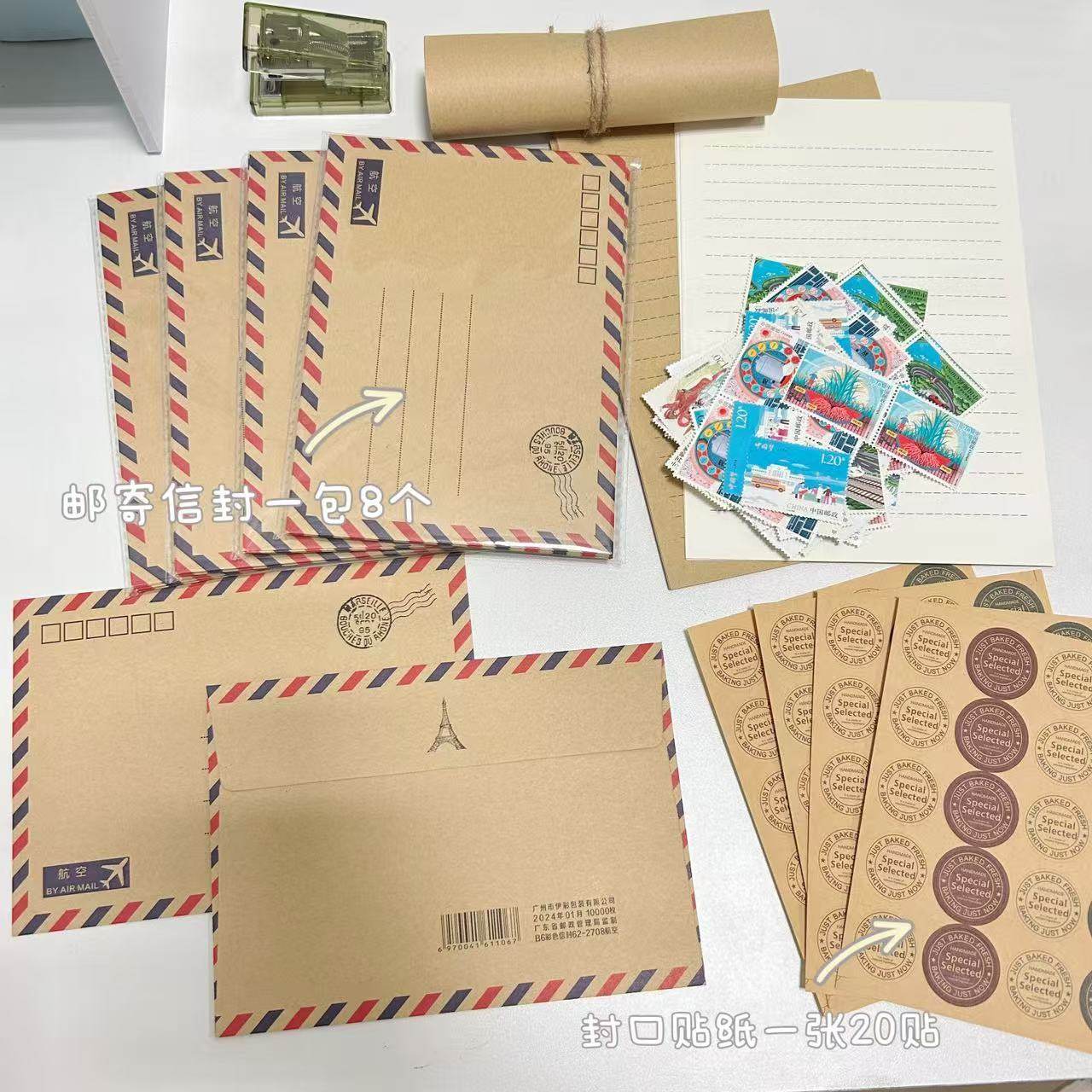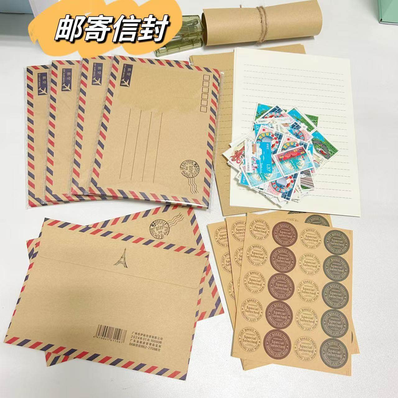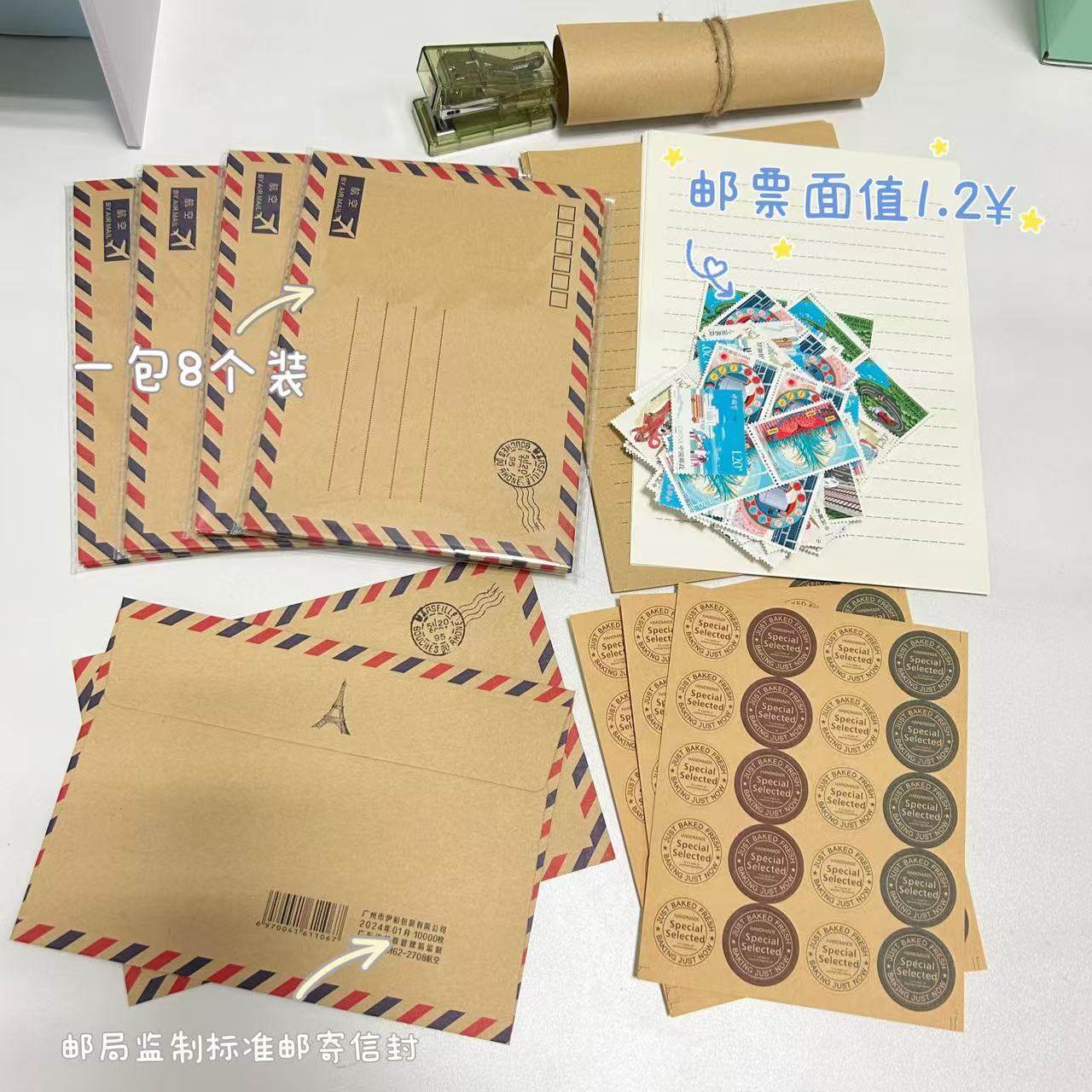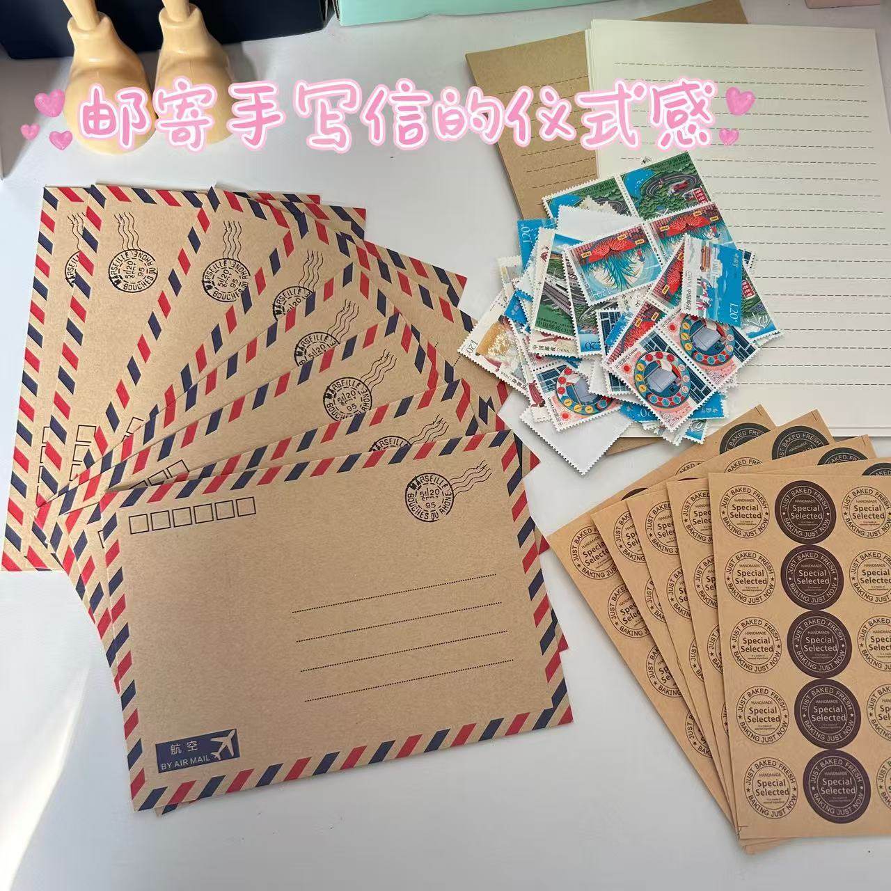 浪漫清新航空信封复古牛皮纸邮寄套装邮票信纸情书信笺贺卡创意