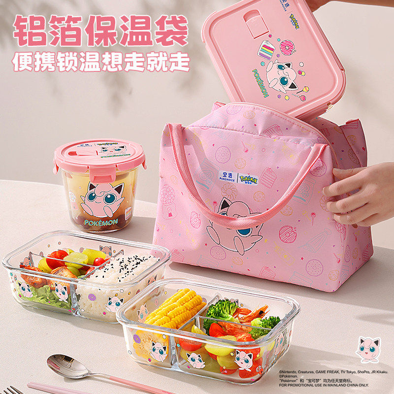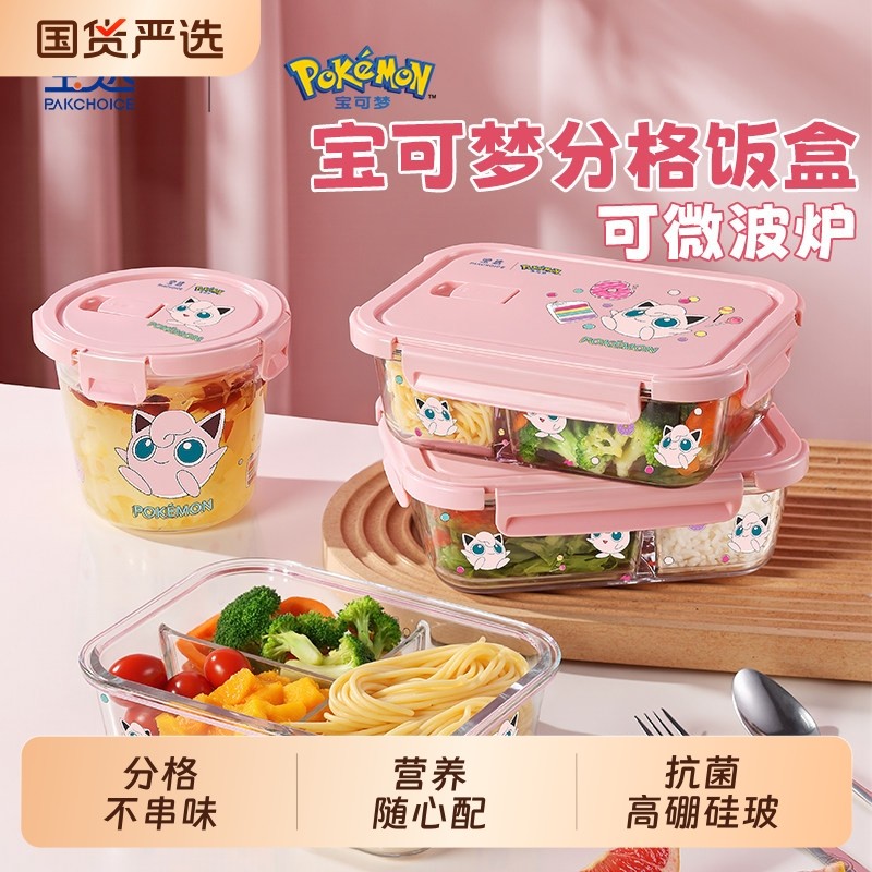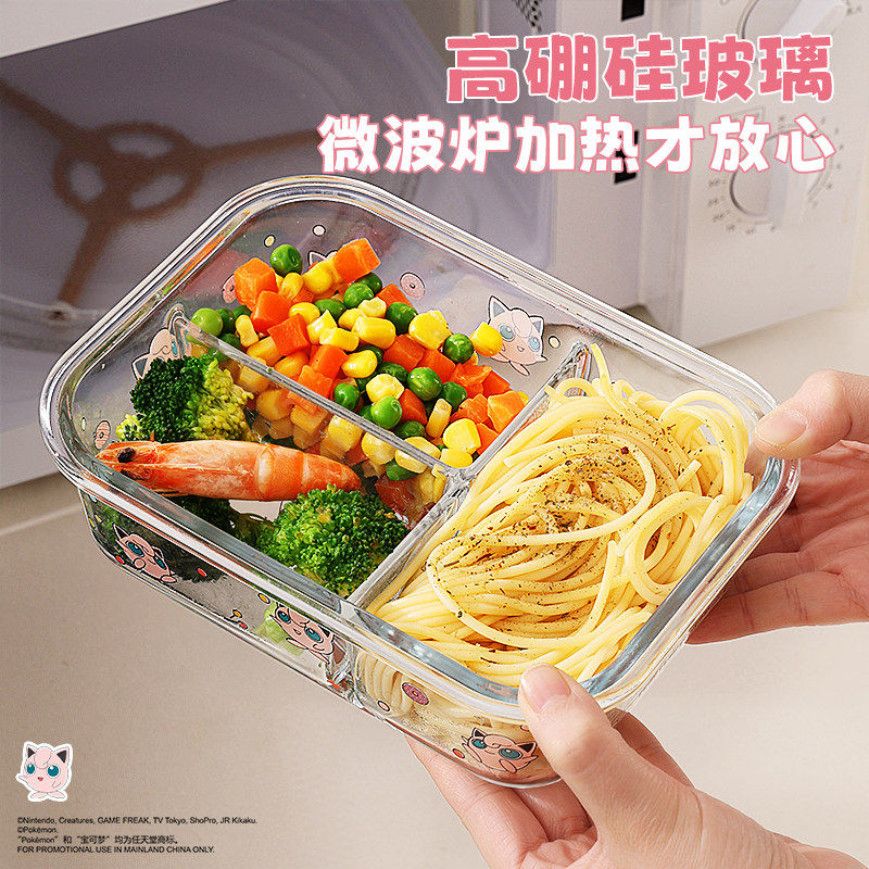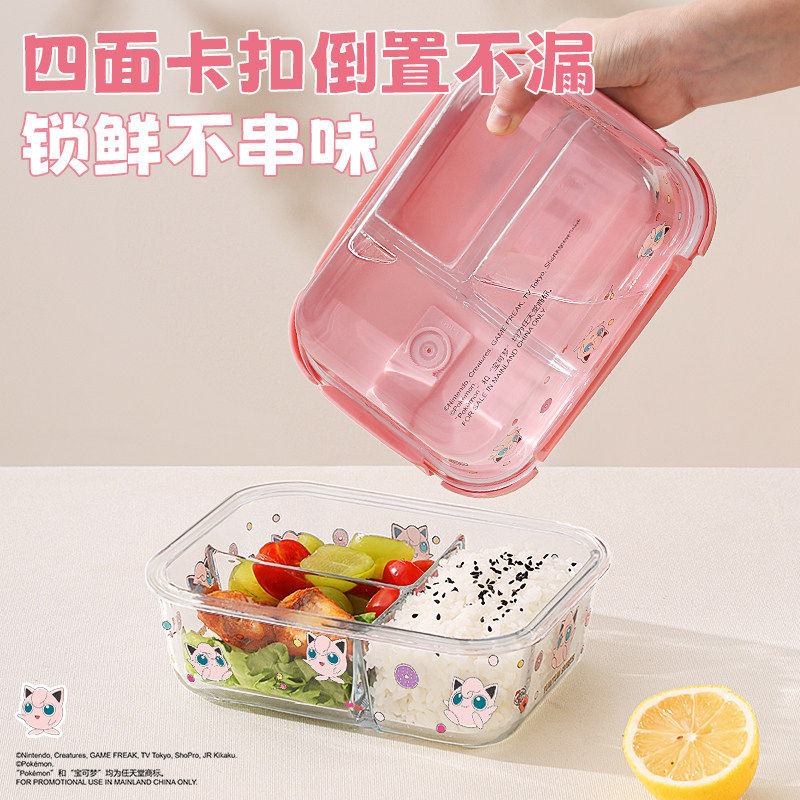 宝可梦玻璃饭盒微波炉加热专用保鲜碗上班族密封分格汤碗便当餐具