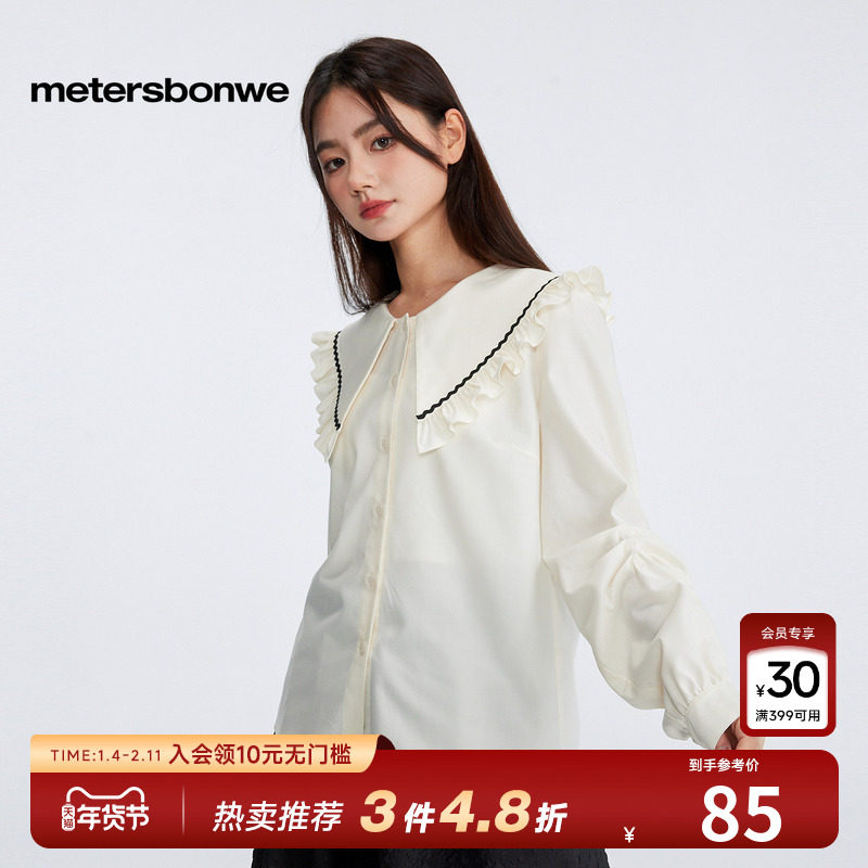 美特斯邦威长袖衬衫女秋季时尚甜美学院减龄海军领流行洋气上衣女